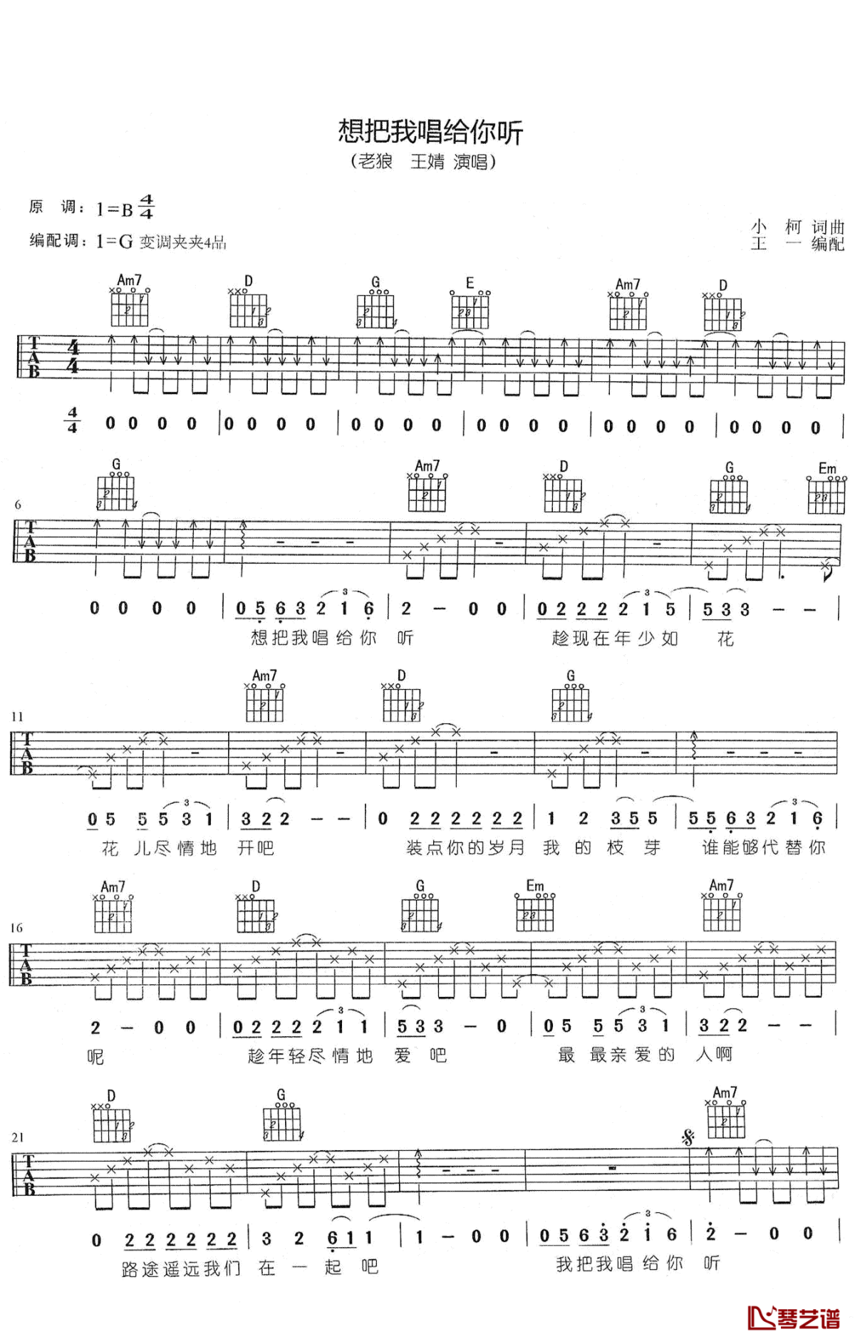 想把我唱给你听吉他谱 - 老狼 - G调吉他弹唱谱