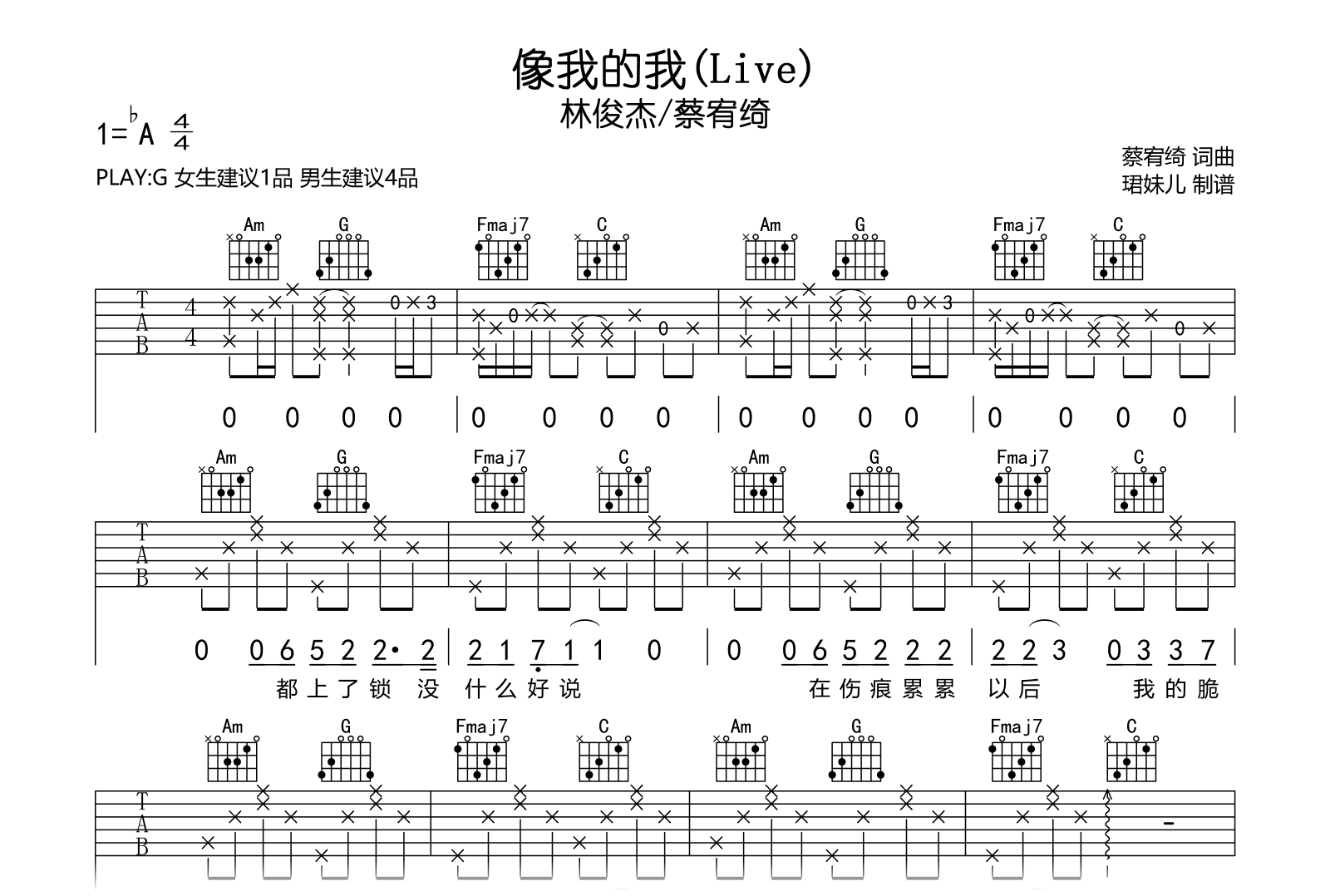 像我的我吉他谱 - 林俊杰/蔡宥绮 - G调吉他弹唱谱