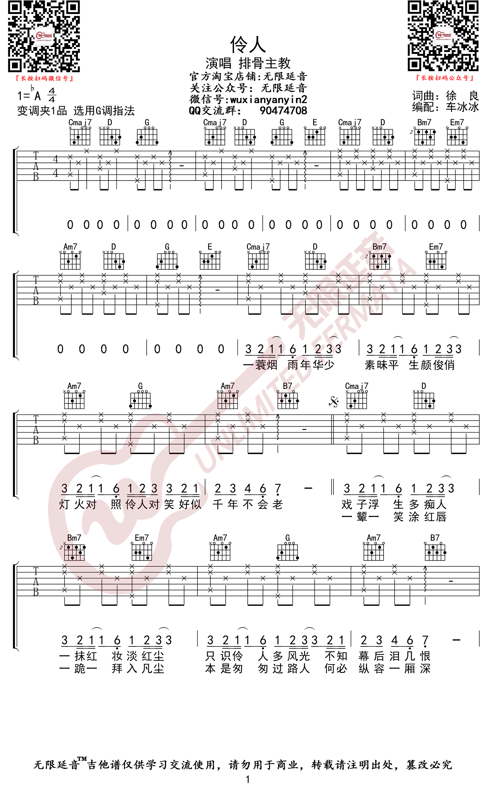 当前位置:琴谱网>吉他弹唱>排骨教主伶人