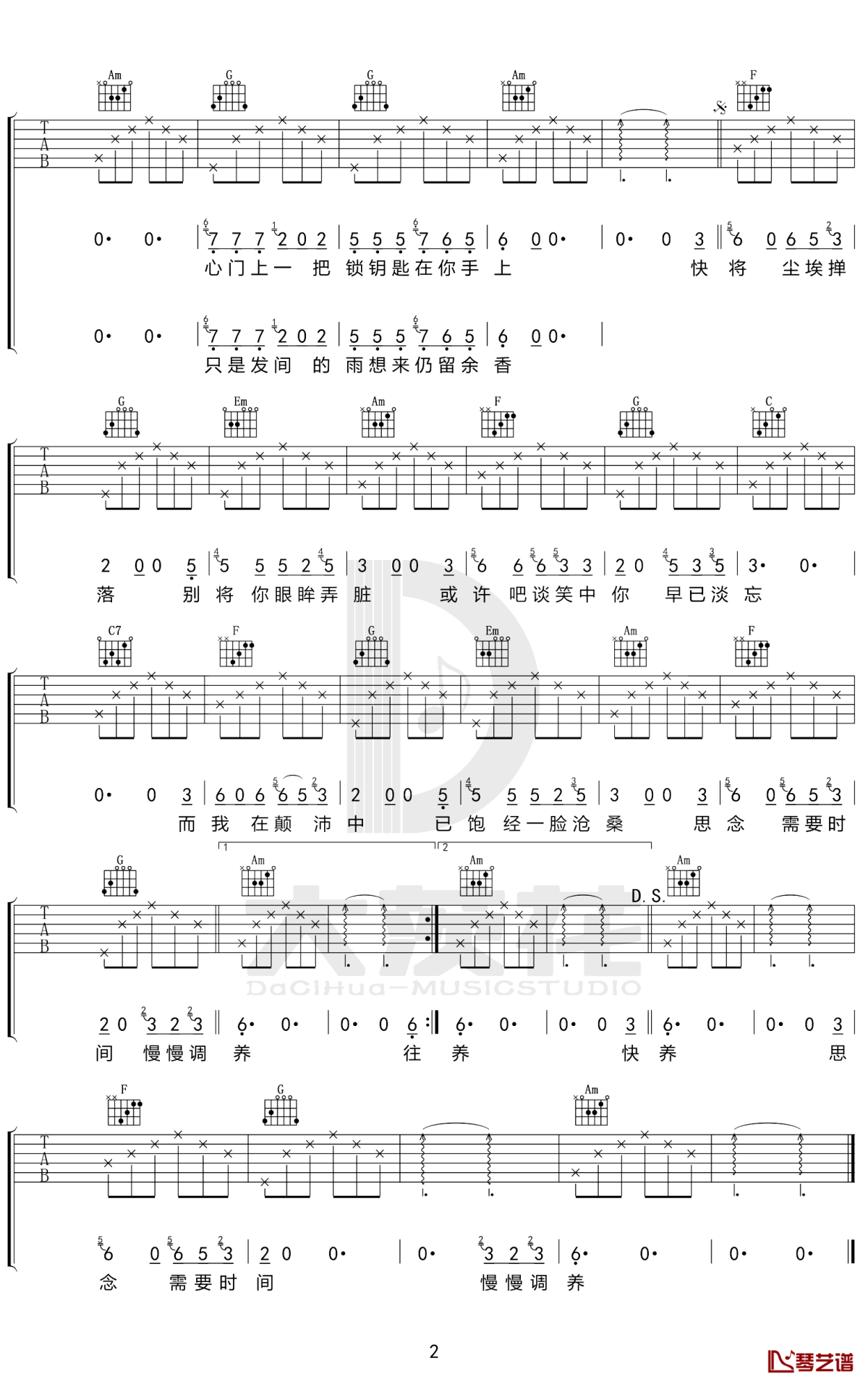 当前位置:琴谱网>吉他弹唱>余香