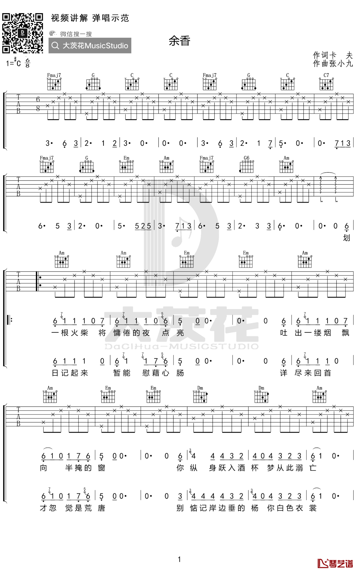 余香吉他谱 - 张小九 - 吉他弹唱谱