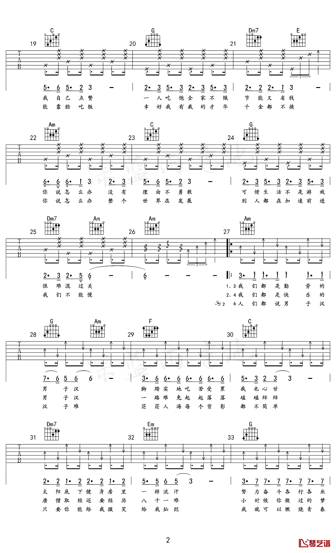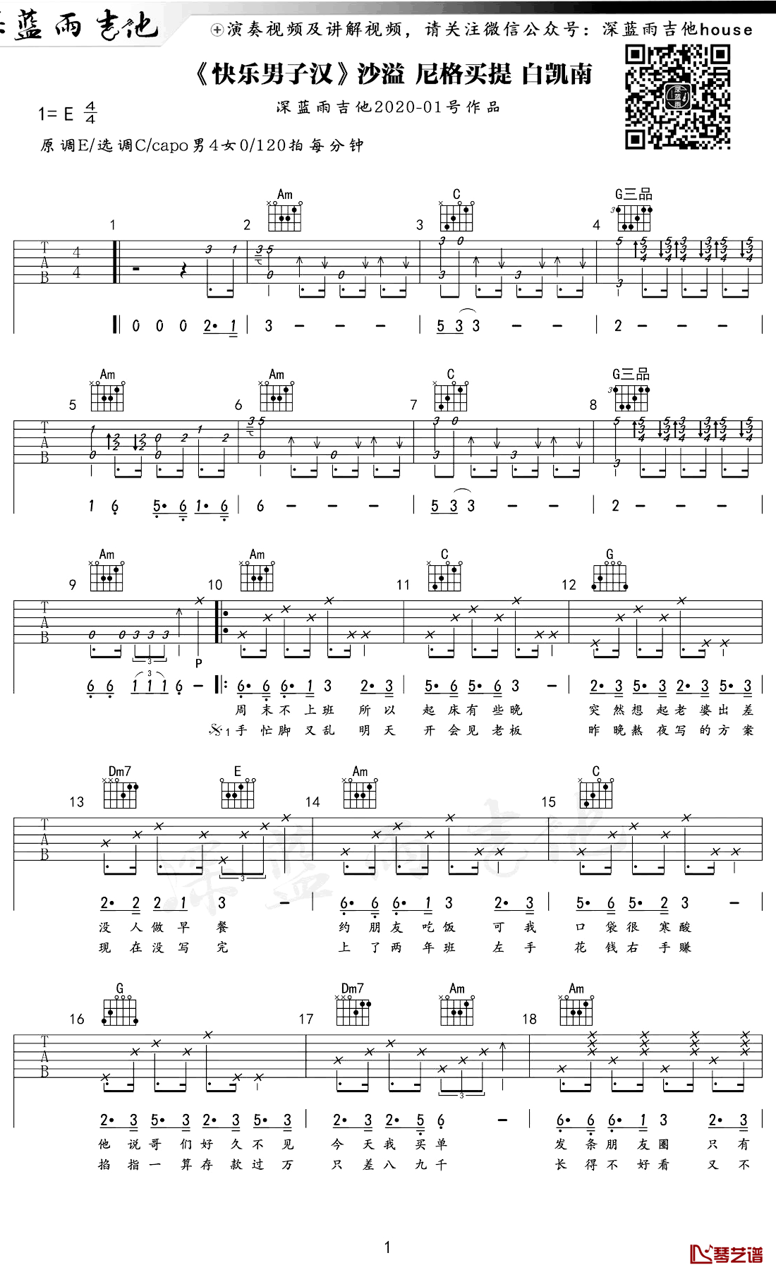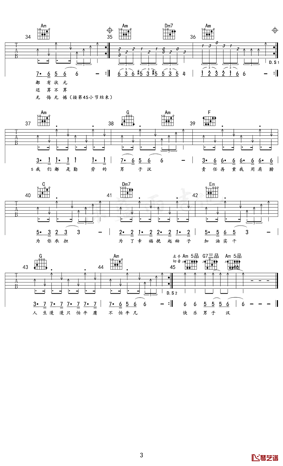 曲谱介绍: 沙溢尼格买提/白凯南《快乐男子汉》吉他弹唱谱,共有3张高清图谱。