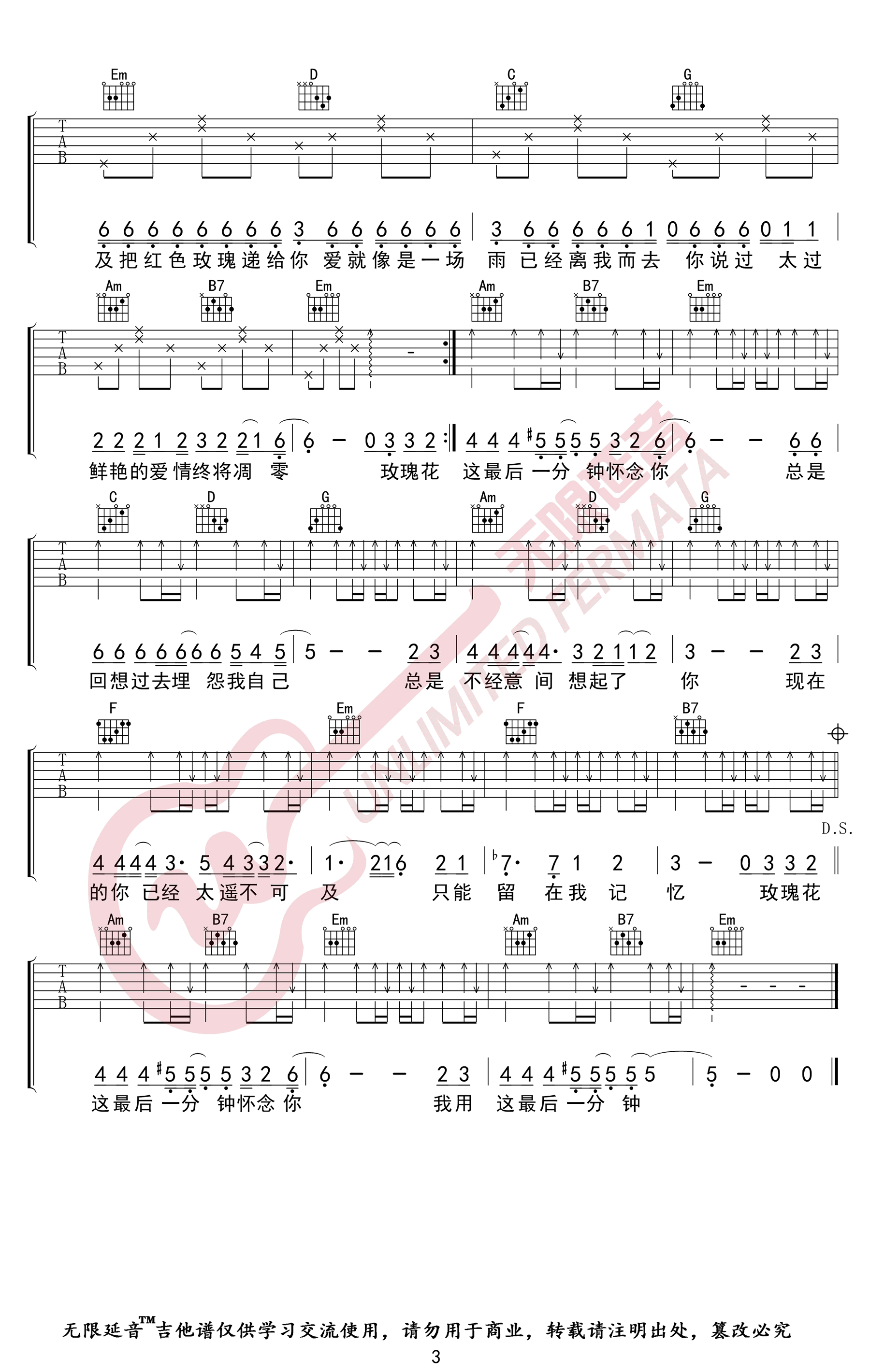 曲谱介绍: 《玫瑰花的葬礼》吉他谱,许嵩演唱,原调A,变调夹夹二品,选用G调指法。玫瑰花的葬礼六线谱,无限延音编配出品,整理上传。 这是当年很火的一首“非主流”歌曲,承载了很多人的青春回忆。也许你也是因为这首歌而认识了许嵩,也成了他的粉丝。轻快的节奏,悲伤的主题,符合了时下青少年躁动的心理和对爱情懵懂的认知,在当年可以说是家喻户晓。