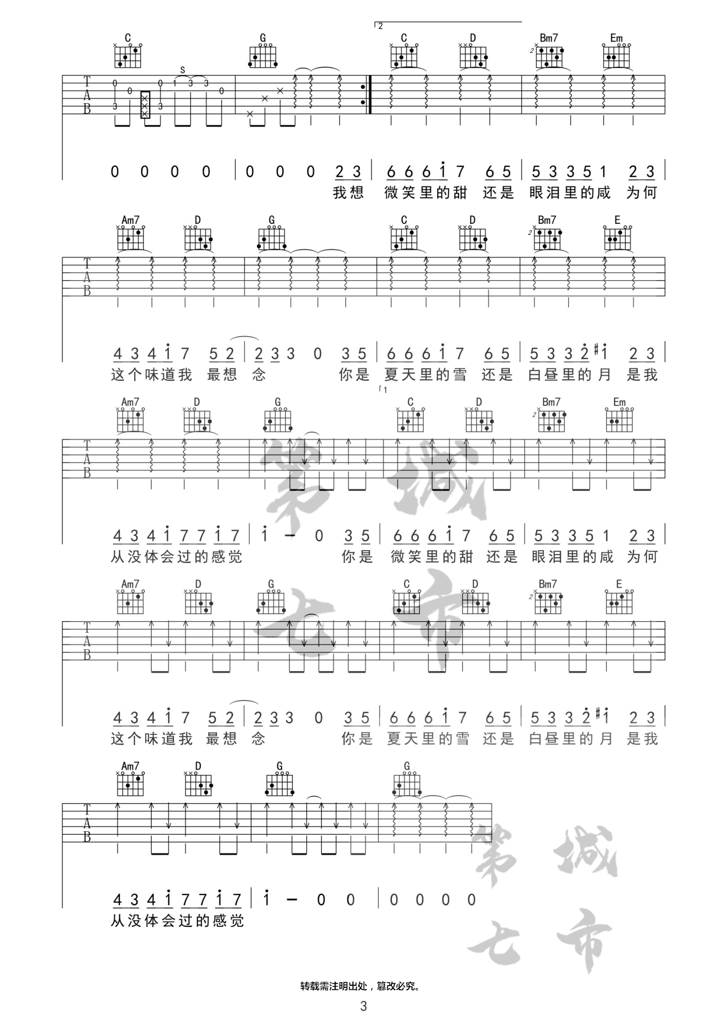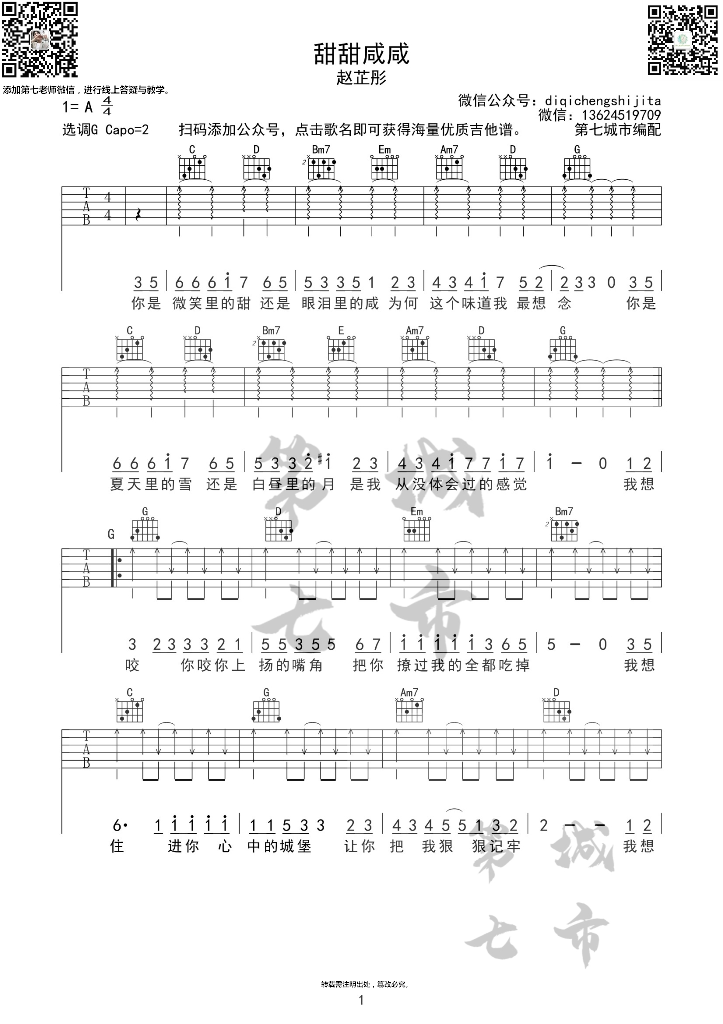 曲谱介绍: 赵芷彤《甜甜咸咸》吉他弹唱谱,共有3张高清图谱。