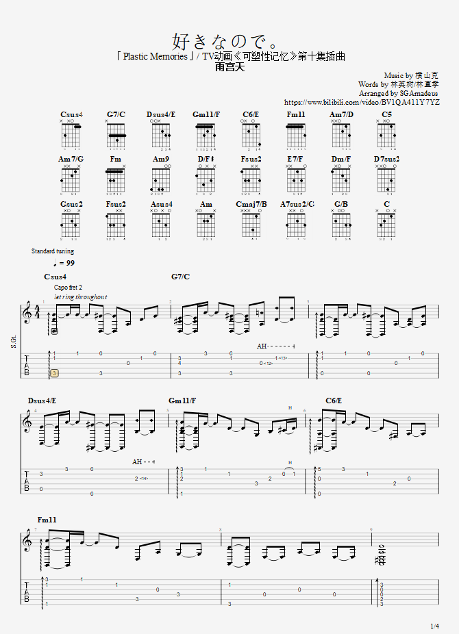 曲谱介绍: 第十集插曲/艾《好きなので。》吉他弹唱谱,共有4张高清图谱。