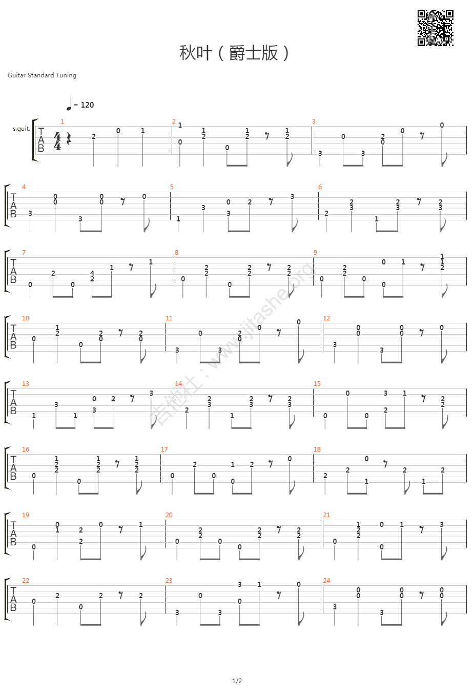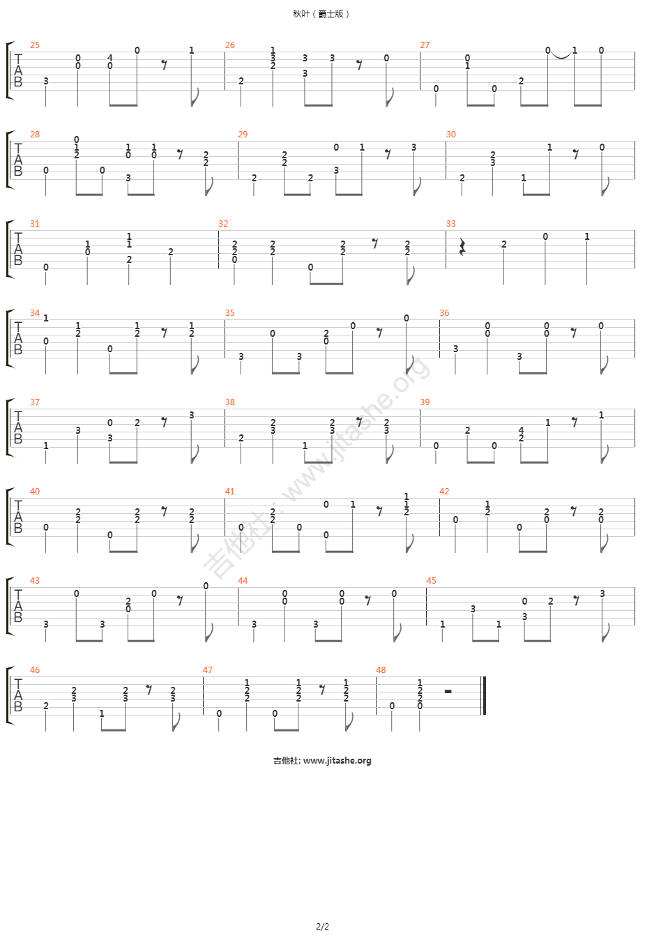曲谱介绍: 《秋叶》吉他弹唱谱,共有2张高清图谱,免翻页排版设计。