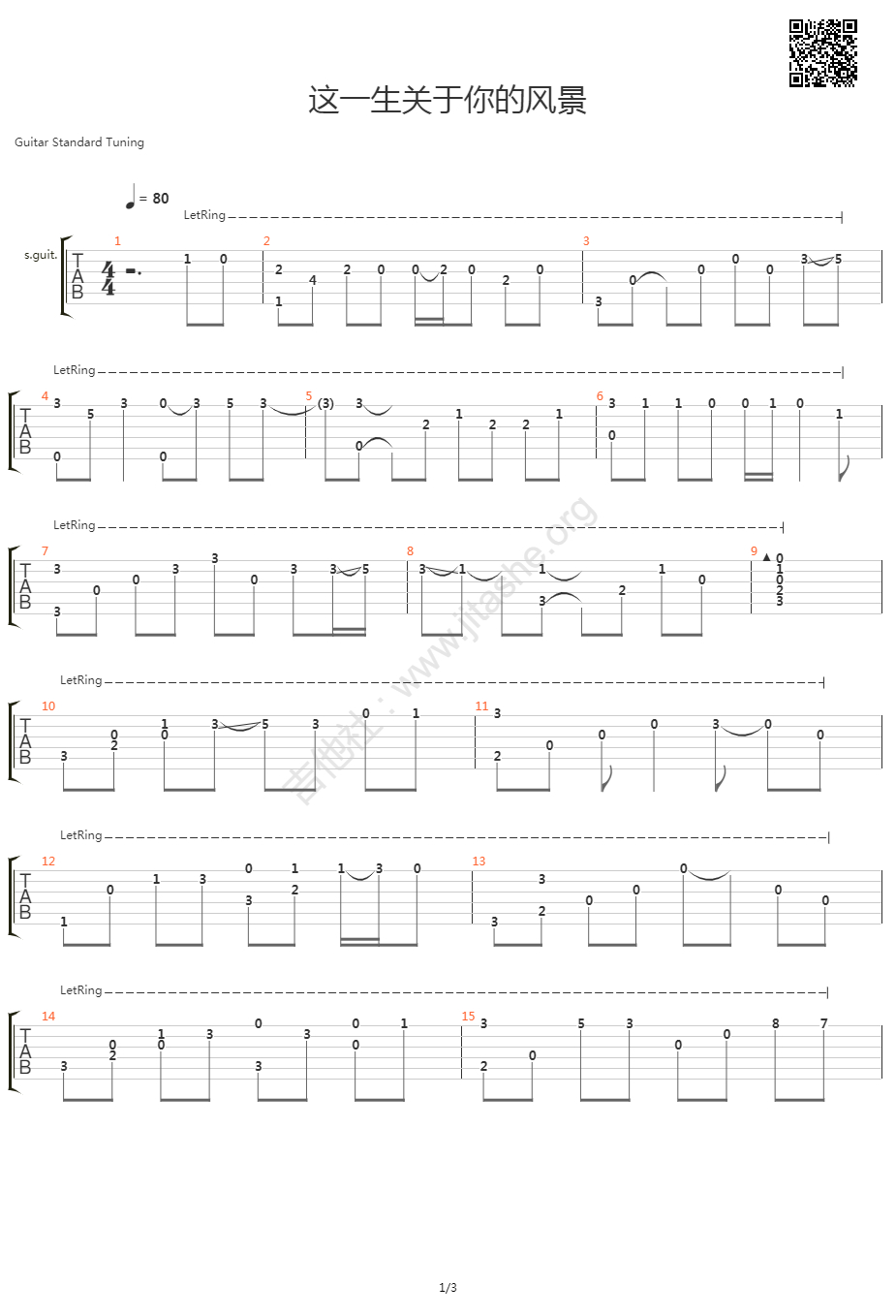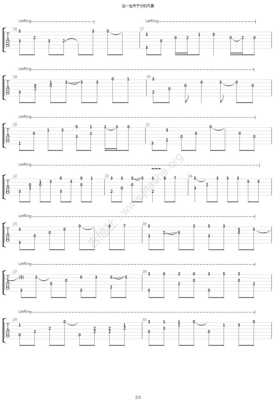 曲谱介绍: 《这一生关于你的风景》吉他独奏谱,共有3张高清图谱。