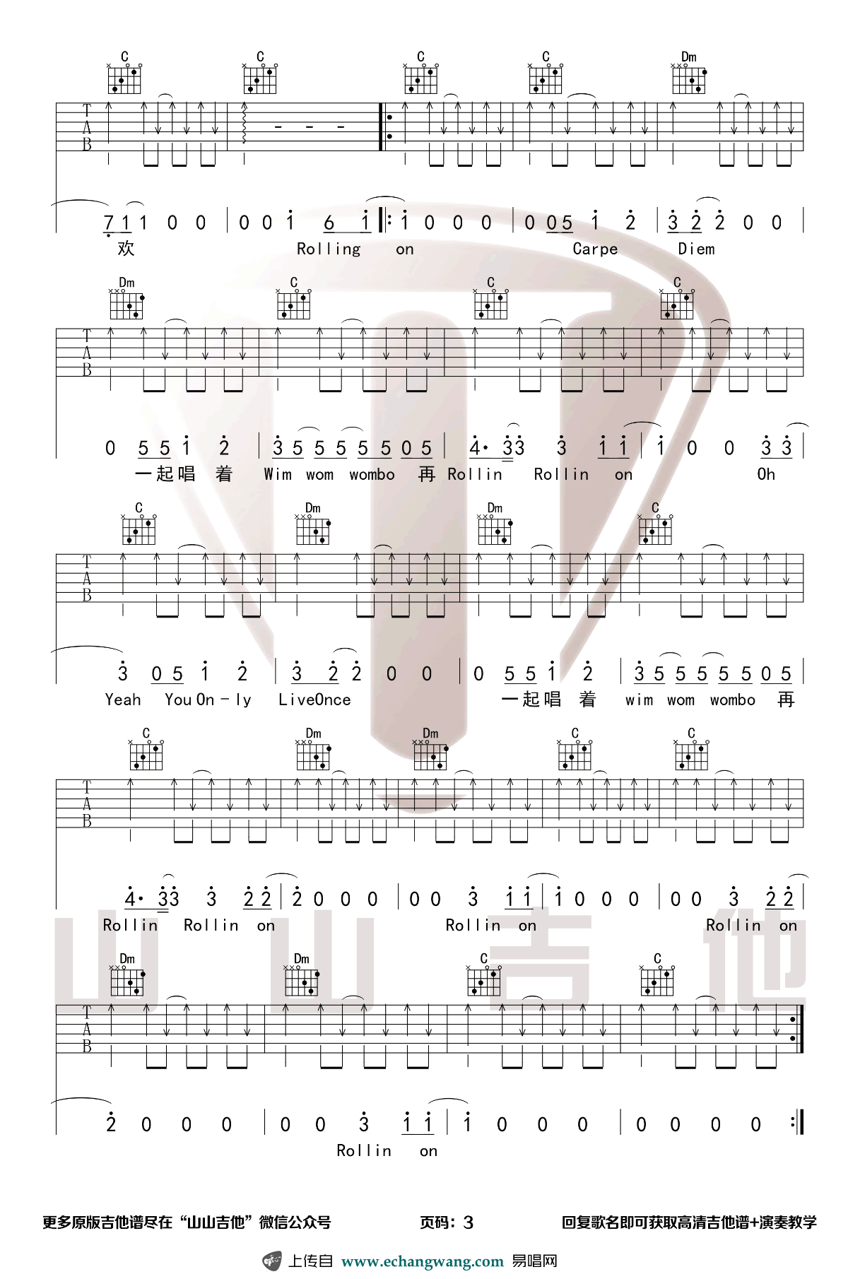 当前位置:琴谱网>吉他弹唱>Rollin'on