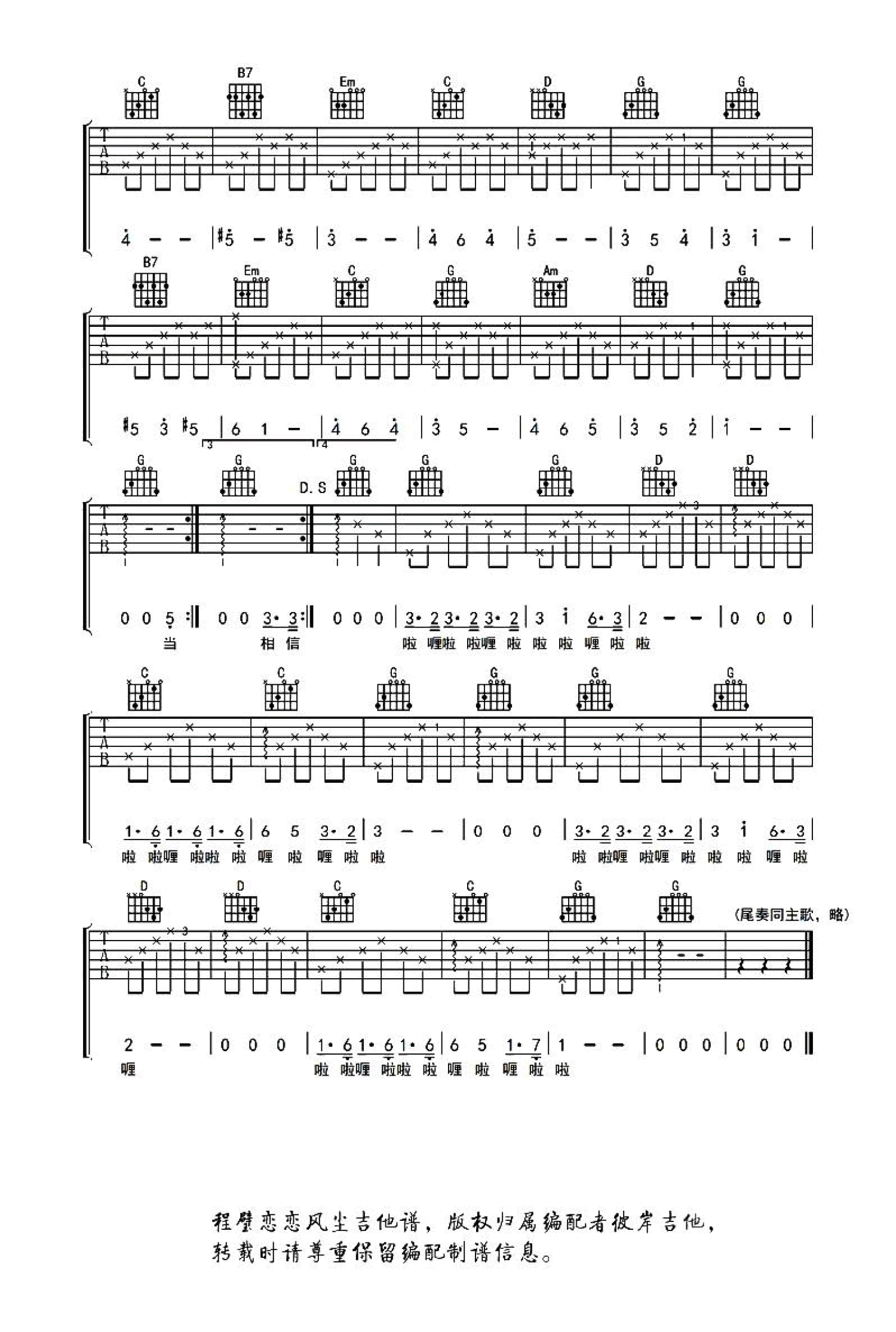 当前位置:琴谱网>吉他弹唱>恋恋风尘