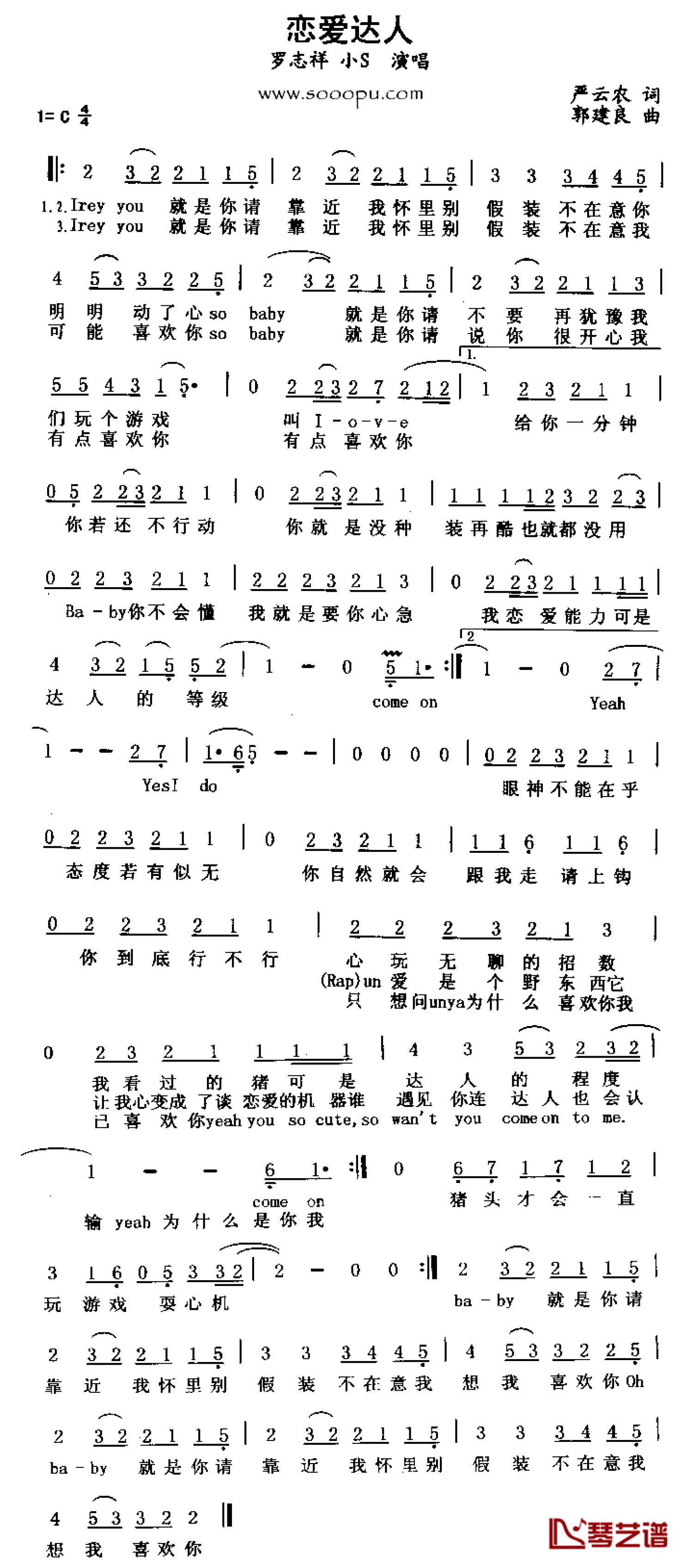 曲谱介绍: 罗志祥、小S《恋爱达人》歌词_简谱