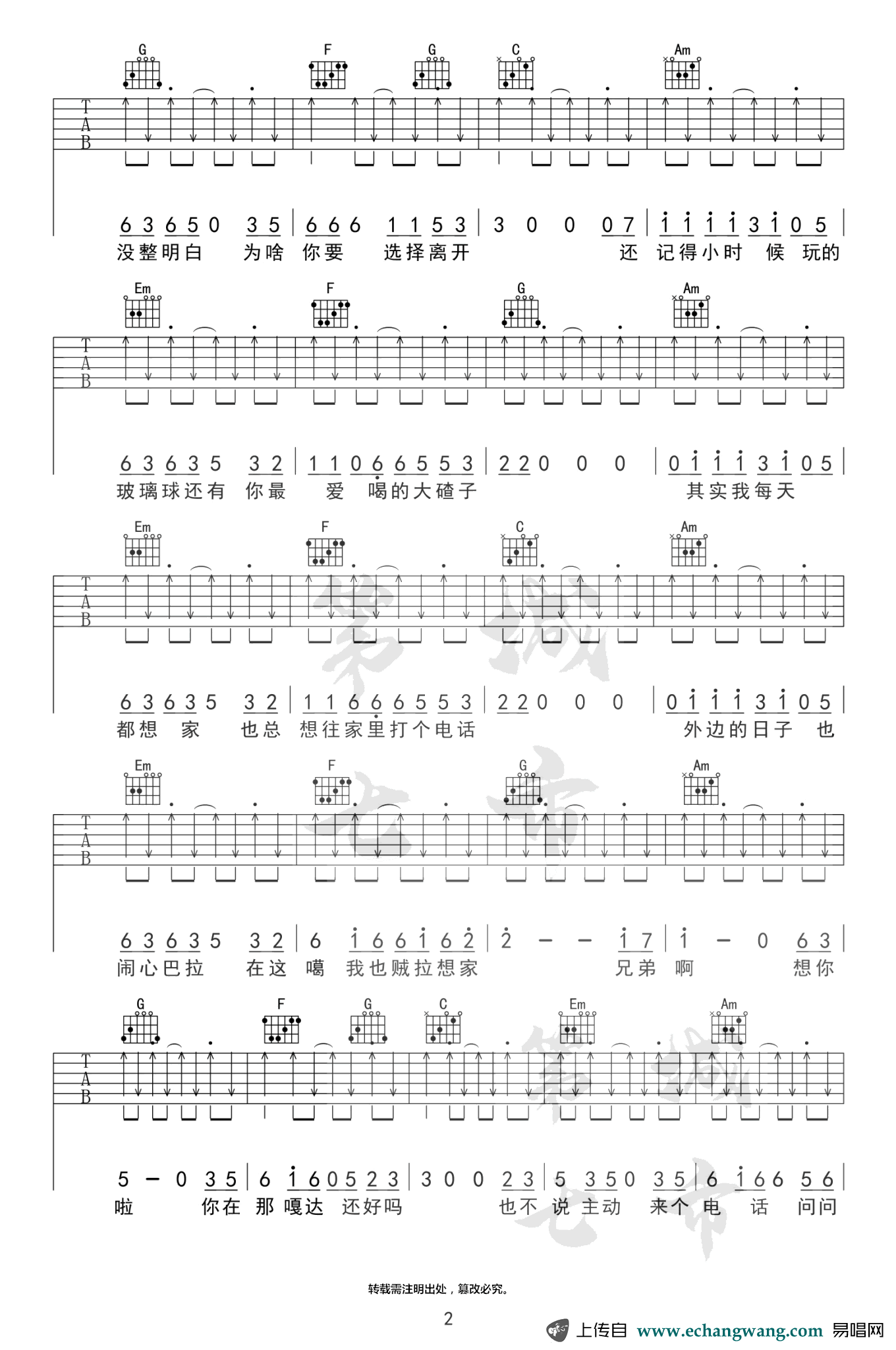 当前位置:琴谱网>吉他弹唱>兄弟想你了