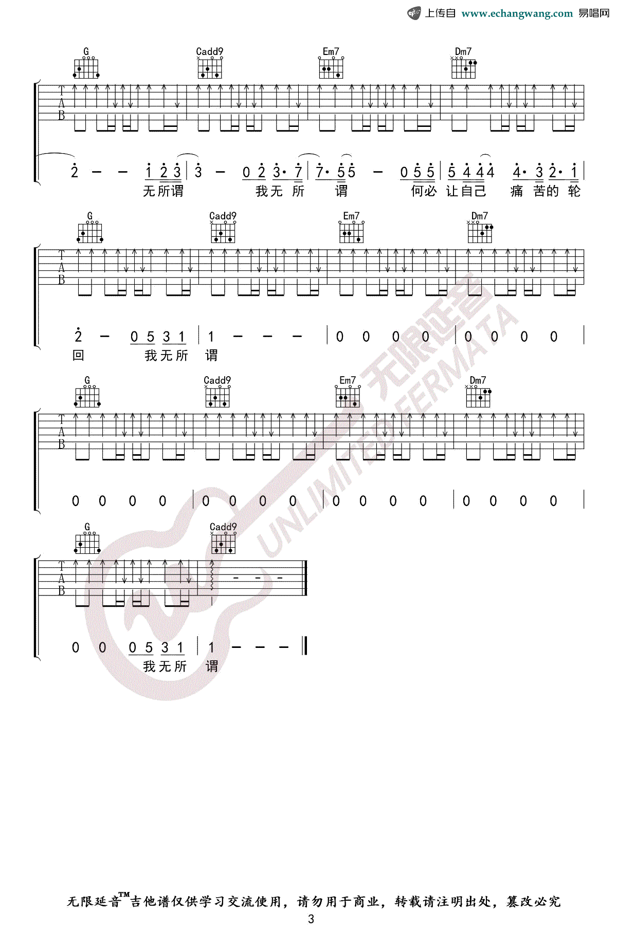 当前位置:琴谱网>吉他弹唱>无所谓