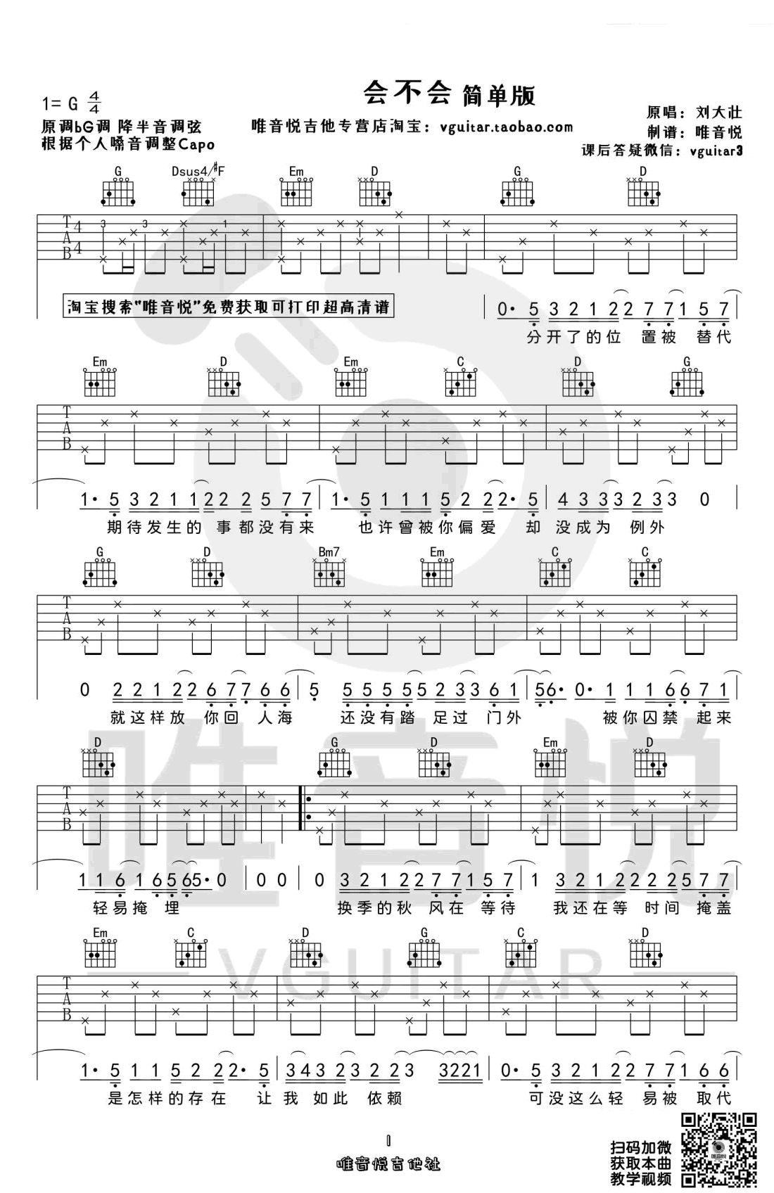 会不会吉他谱 - 刘大壮 - G调吉他弹唱谱