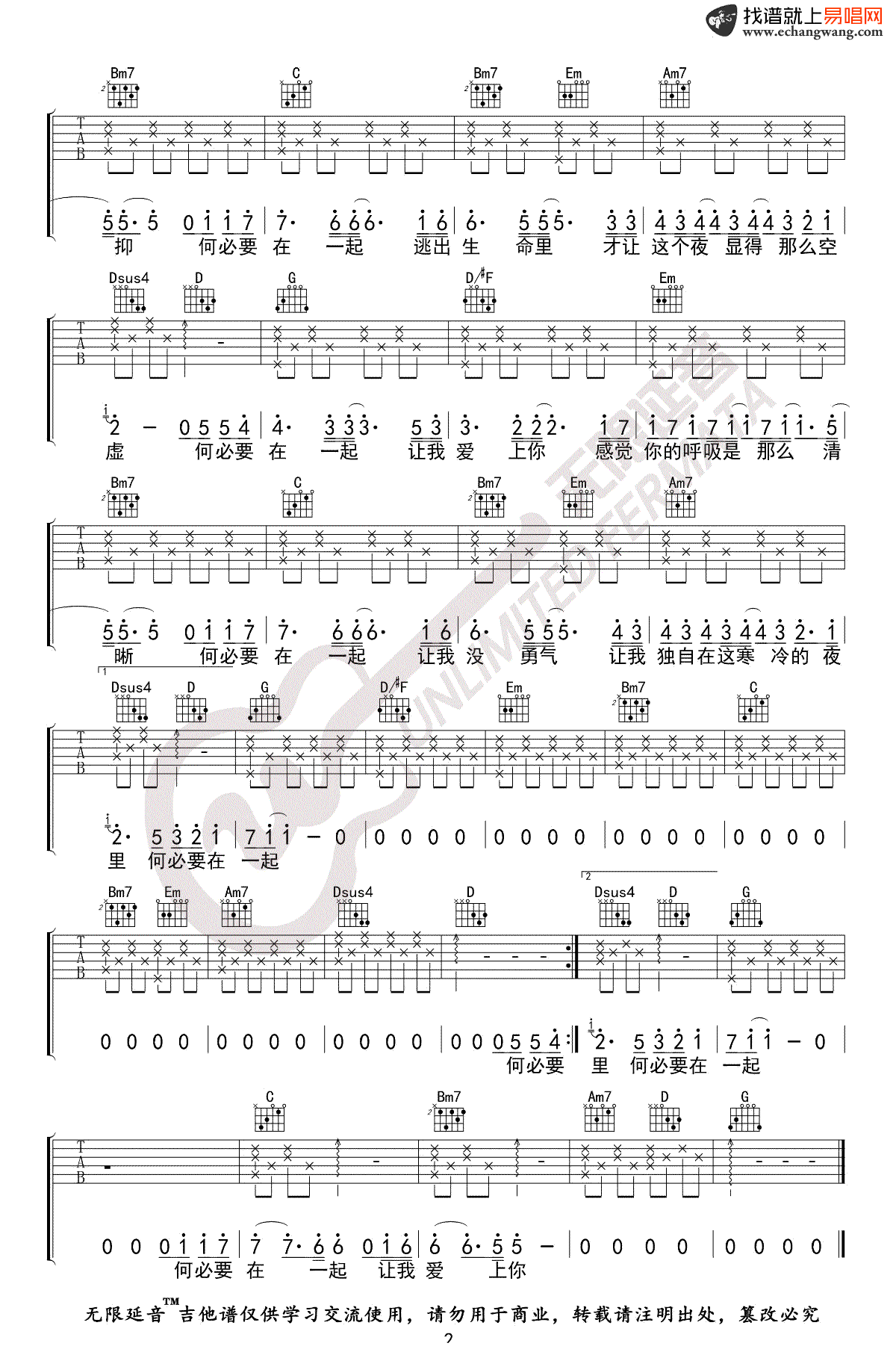 当前位置:琴谱网>吉他弹唱>何必在一起