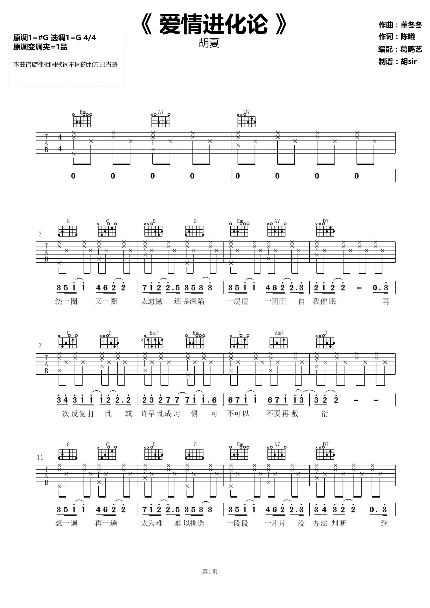 • 爱情进化论吉他谱 - 胡夏 - G调吉他弹唱谱第1张