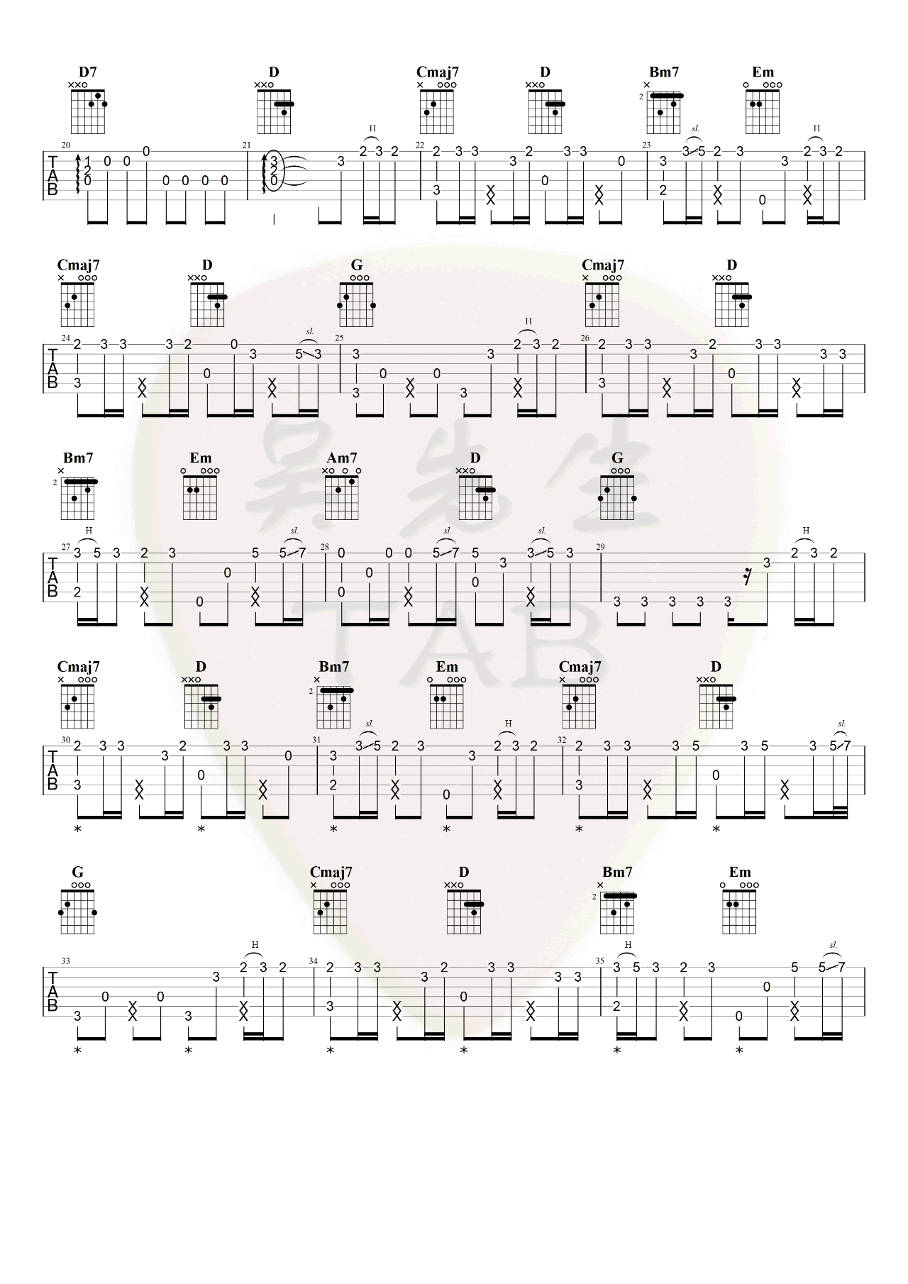 曲谱介绍: 苏琛《欢》吉他指弹谱,一首网络上非常火的歌曲,欢吉他独奏谱,完整版共三张六线谱。