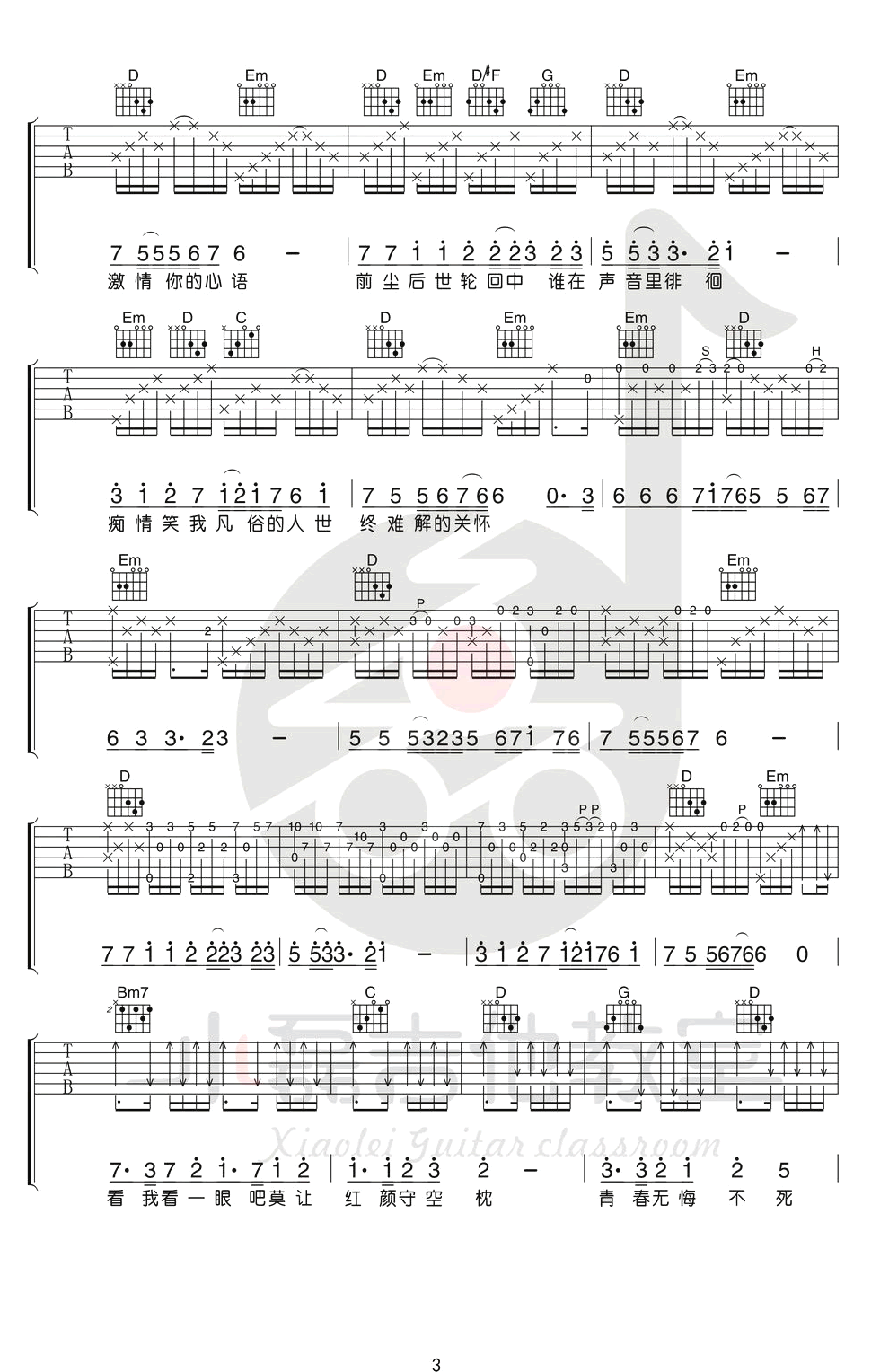 曲谱介绍: 《追梦人》吉他谱,凤飞飞的一首经典代表歌曲,是由罗大佑写给三毛的作品,也是电视剧《雪山飞狐》片尾曲,已经成为一个时代无法抹去的记忆。追梦人六线谱,原调E选调G,小磊吉他编配分享,整理上传。 小磊老师改编的这个版本,自认为非常的满意,特别是前奏部分,很好的用吉他还原了原版的旋律成分和和声走向,加入了右手自然泛音,使歌曲的演奏色彩得到了提升! 主歌弹唱部分难度得到了降低,可以大大缩减大家的练习成本,间奏我们和原曲一样,保留了主歌旋律,在吉他上,变成了一段指弹小段! 希望大家喜欢老师的编排!