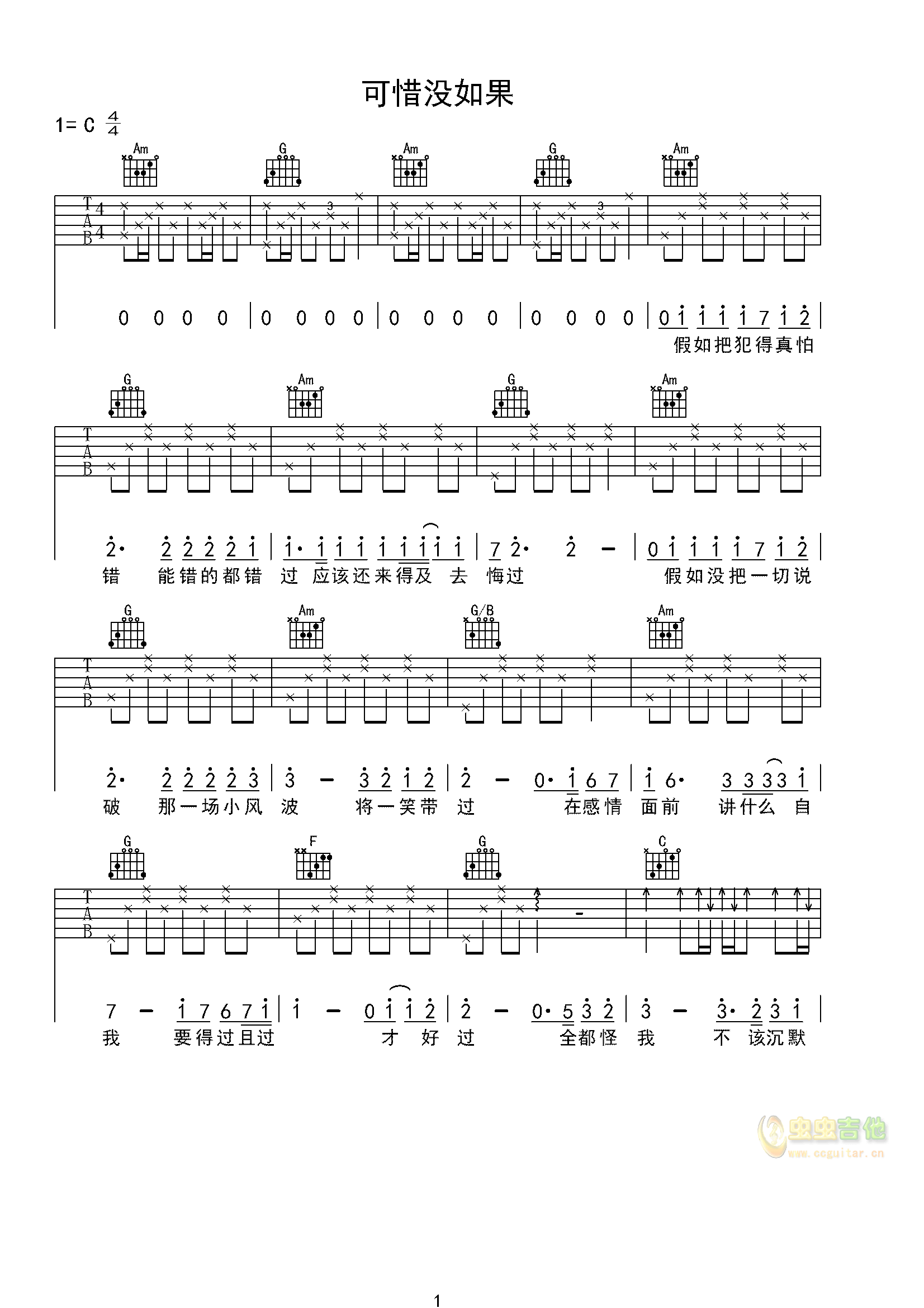 当前位置:琴谱网>吉他弹唱>可惜没有如果