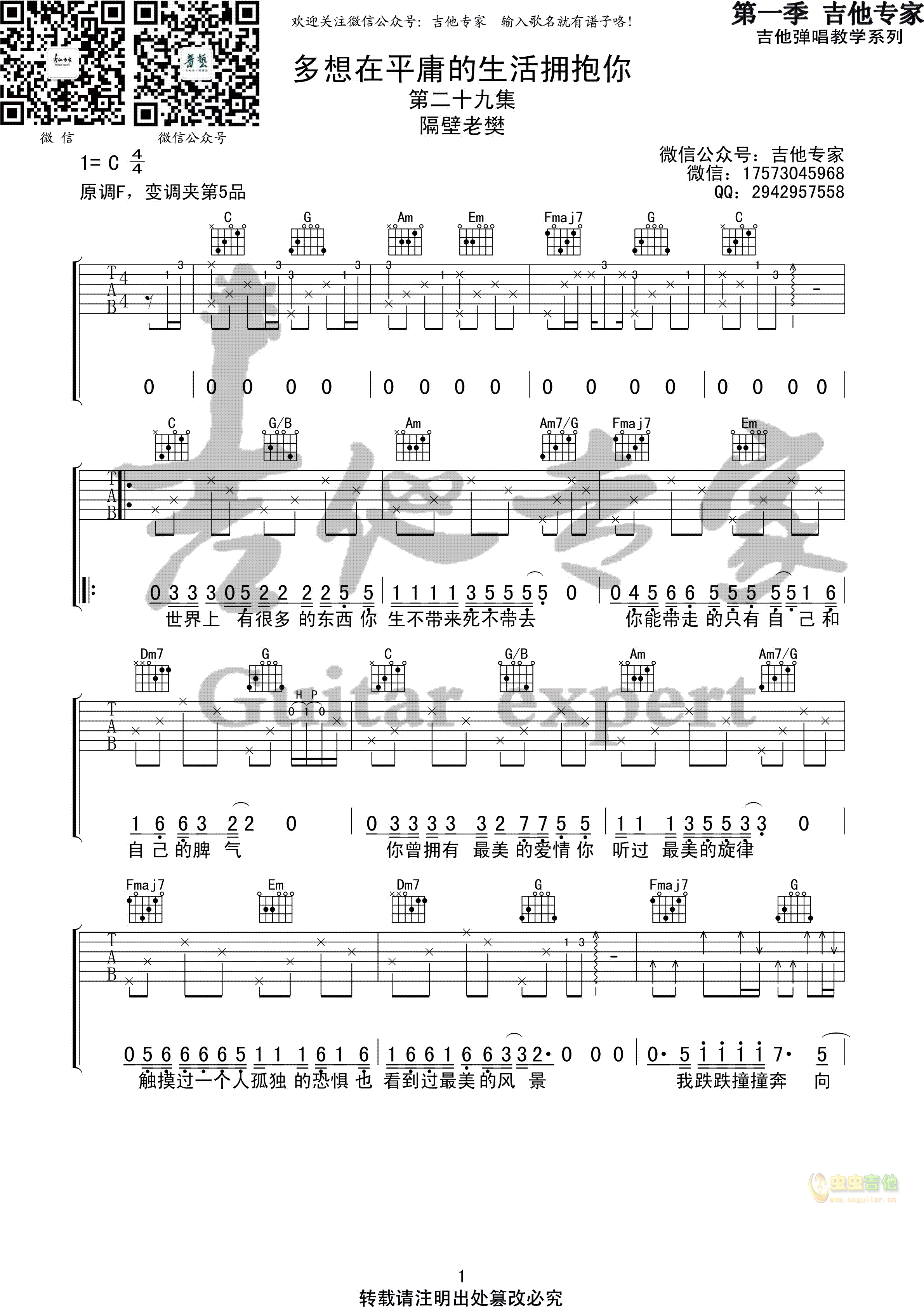 当前位置:琴谱网>吉他弹唱>多想在平庸的生活拥抱你