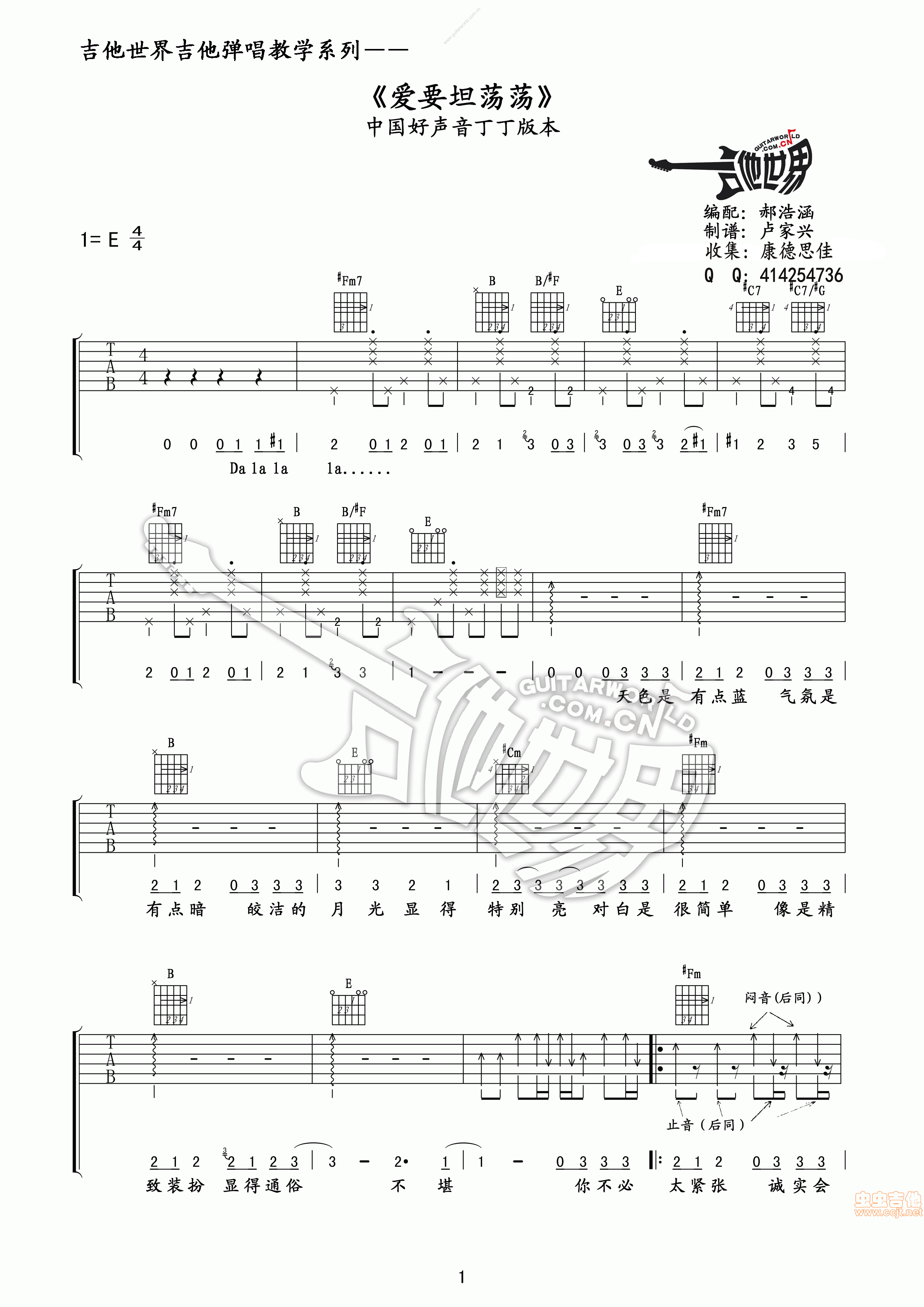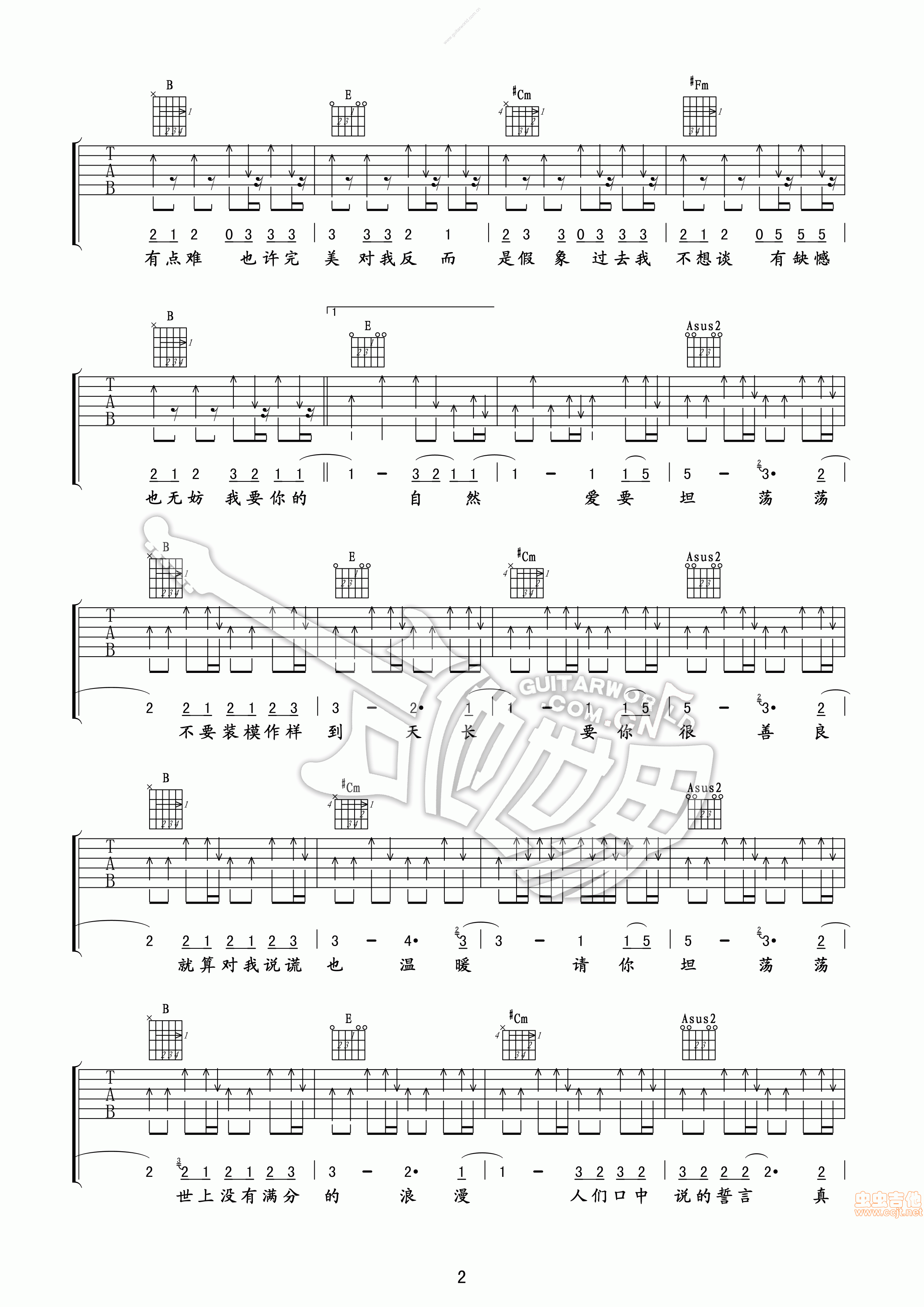 爱要坦荡荡吉他谱 - 吉他弹唱谱