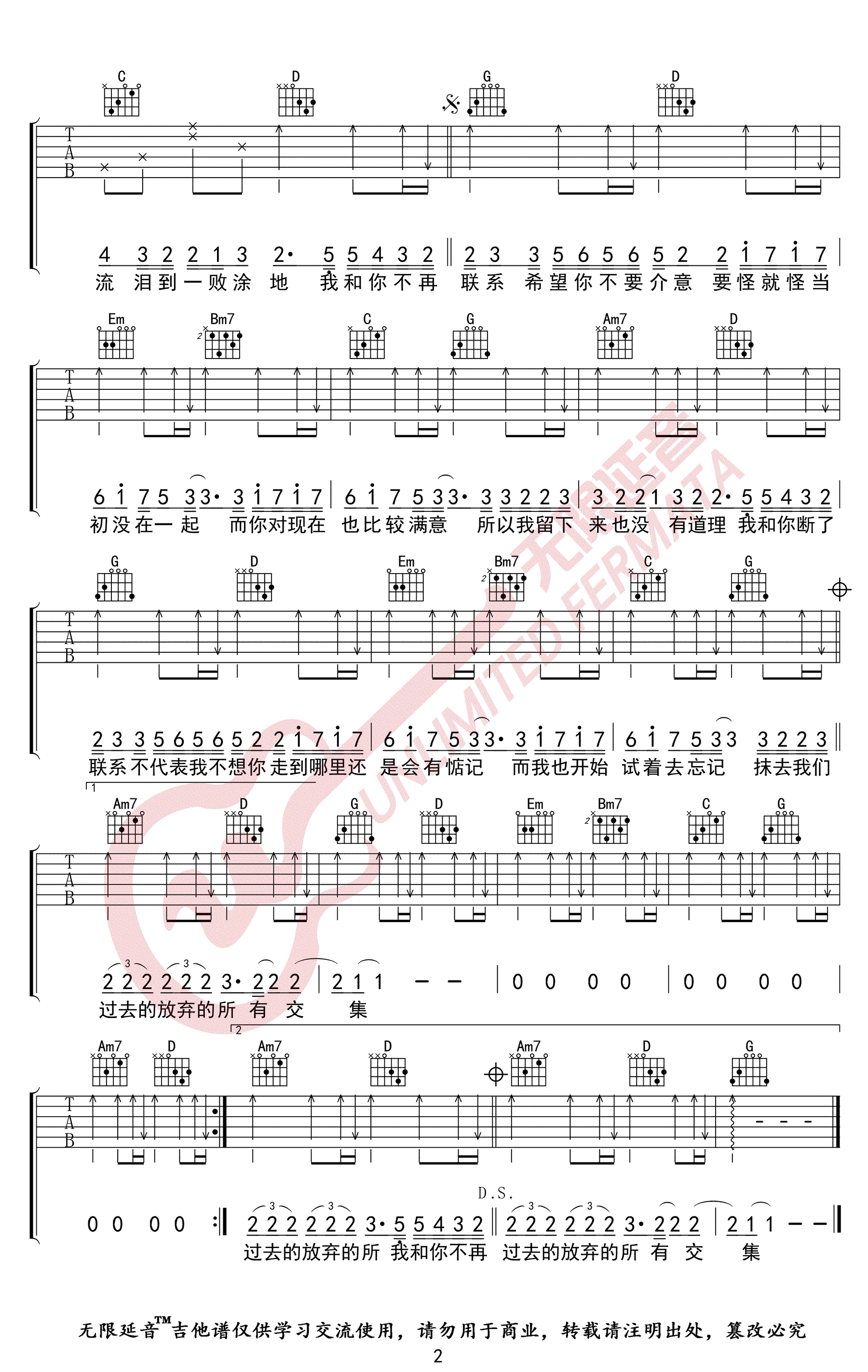 不再联系吉他谱 - 夏天Alex - 吉他弹唱谱