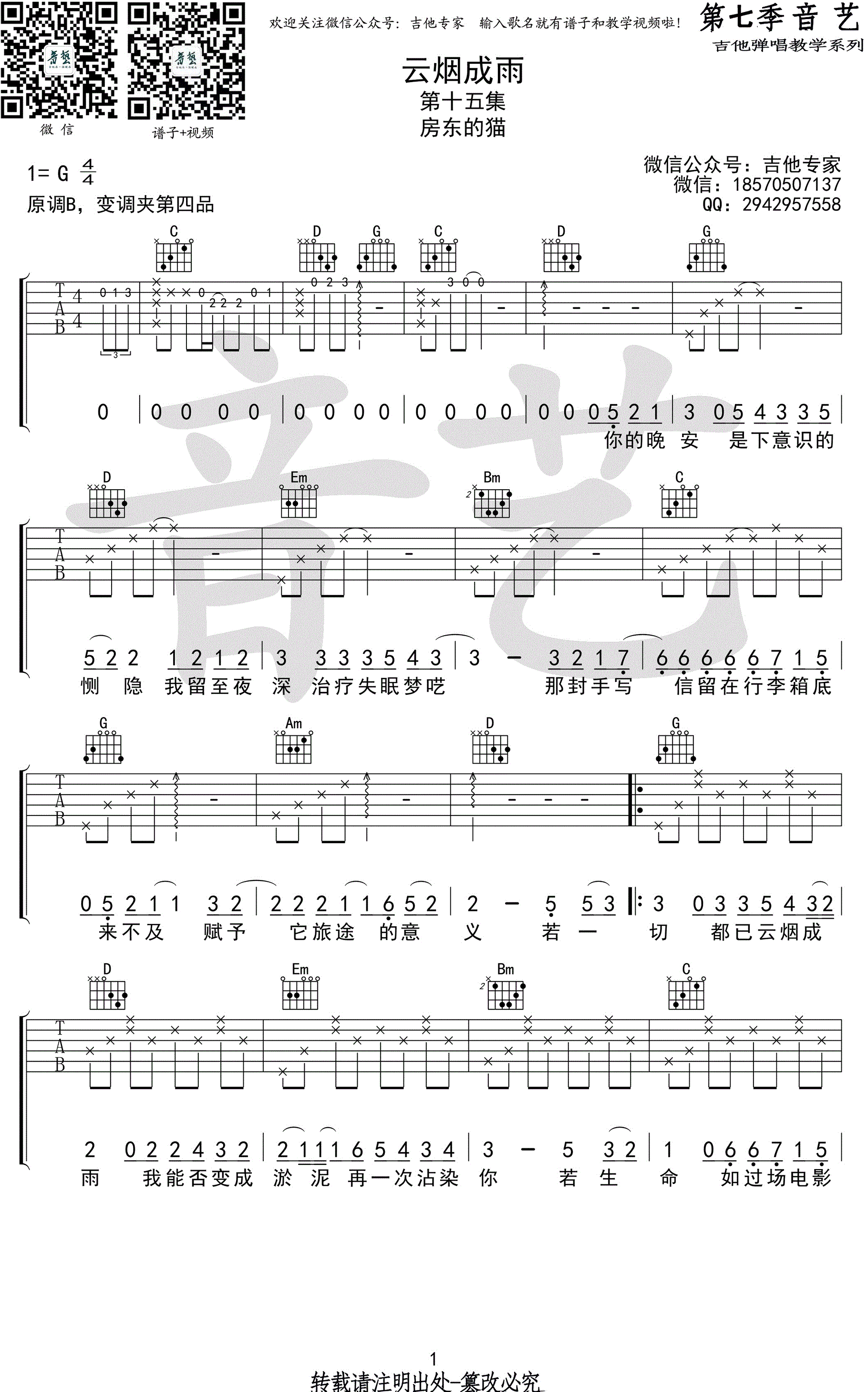 当前位置:琴谱网>吉他弹唱>云烟成雨