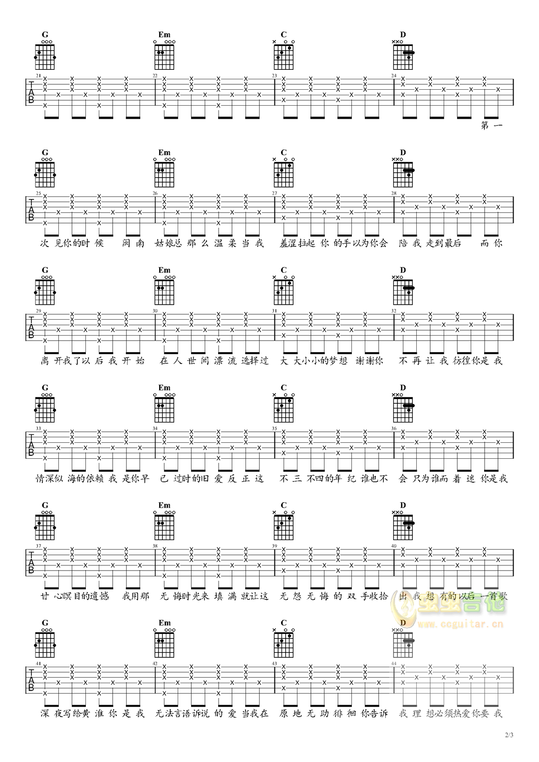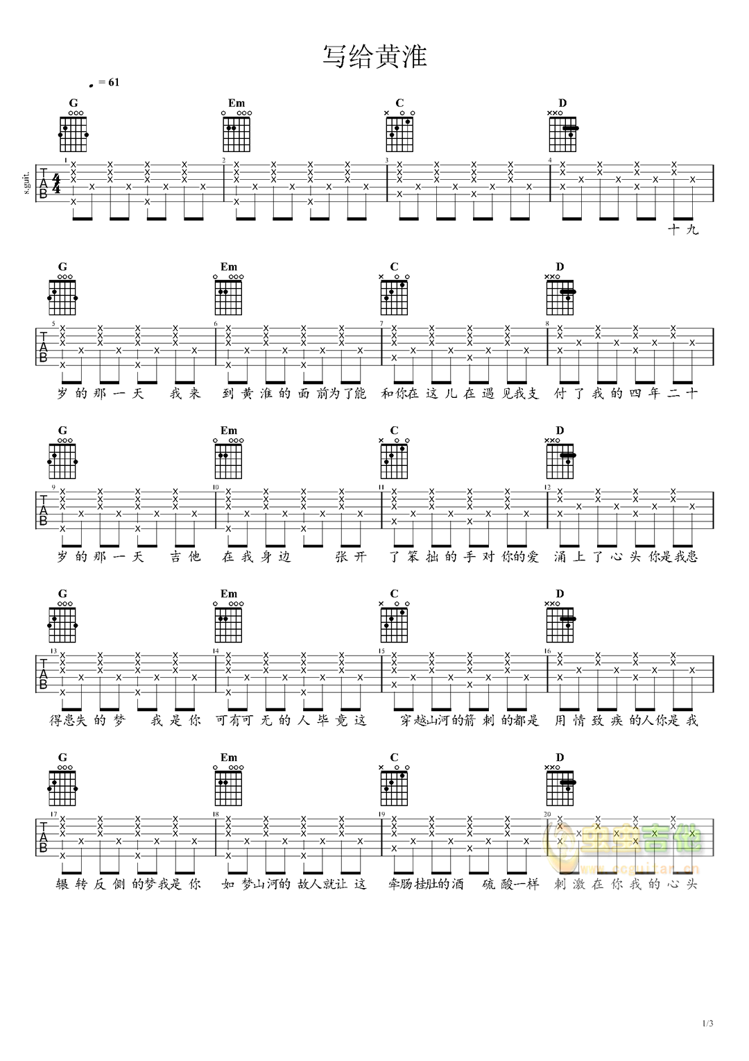 当前位置:琴谱网>吉他弹唱>写给黄淮