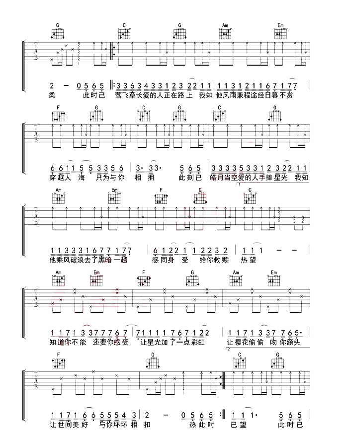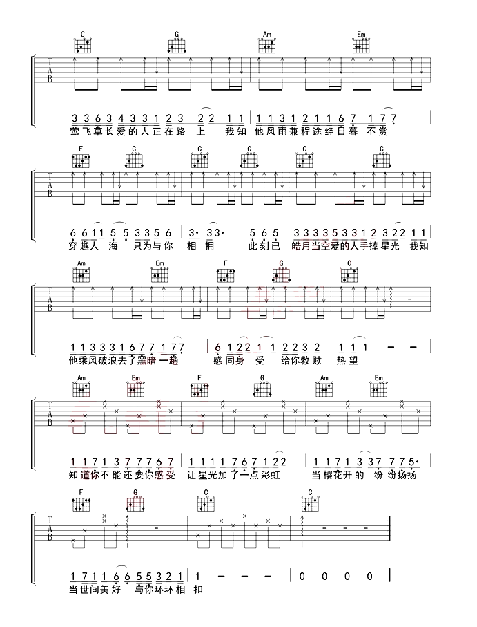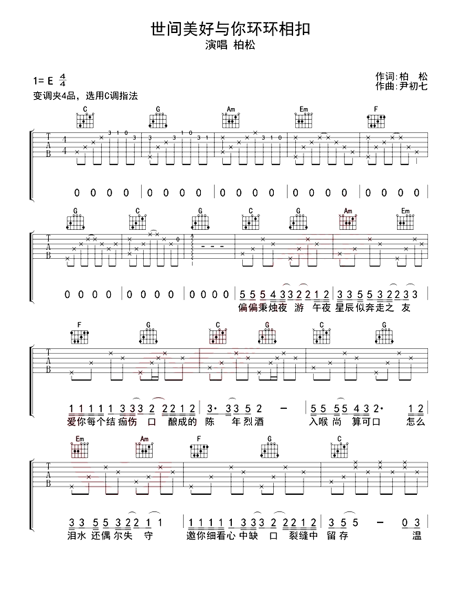 世间美好与你环环相扣吉他谱 - 吉他弹唱谱