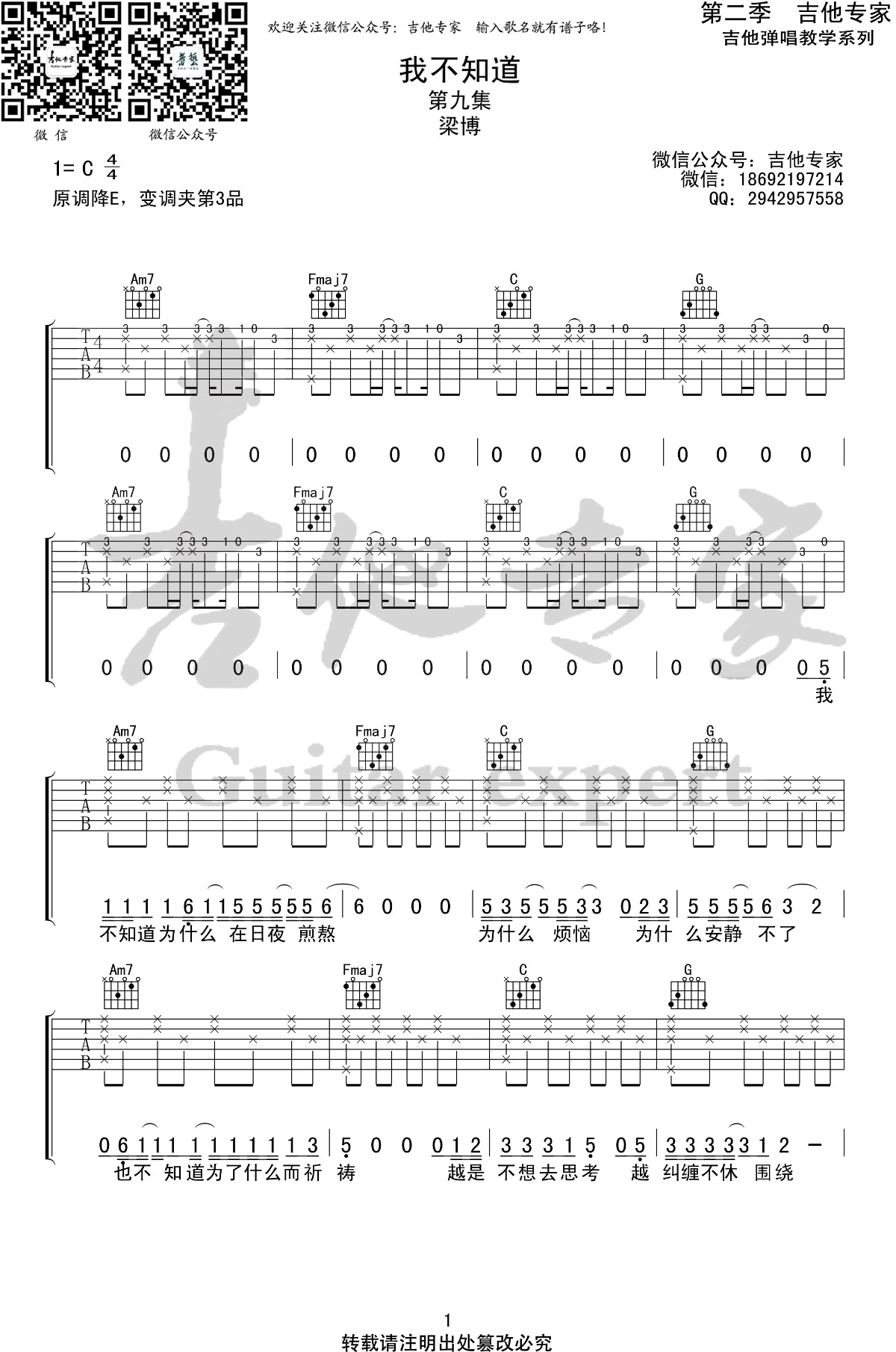 我不知道吉他谱 - 梁博 - 吉他弹唱谱
