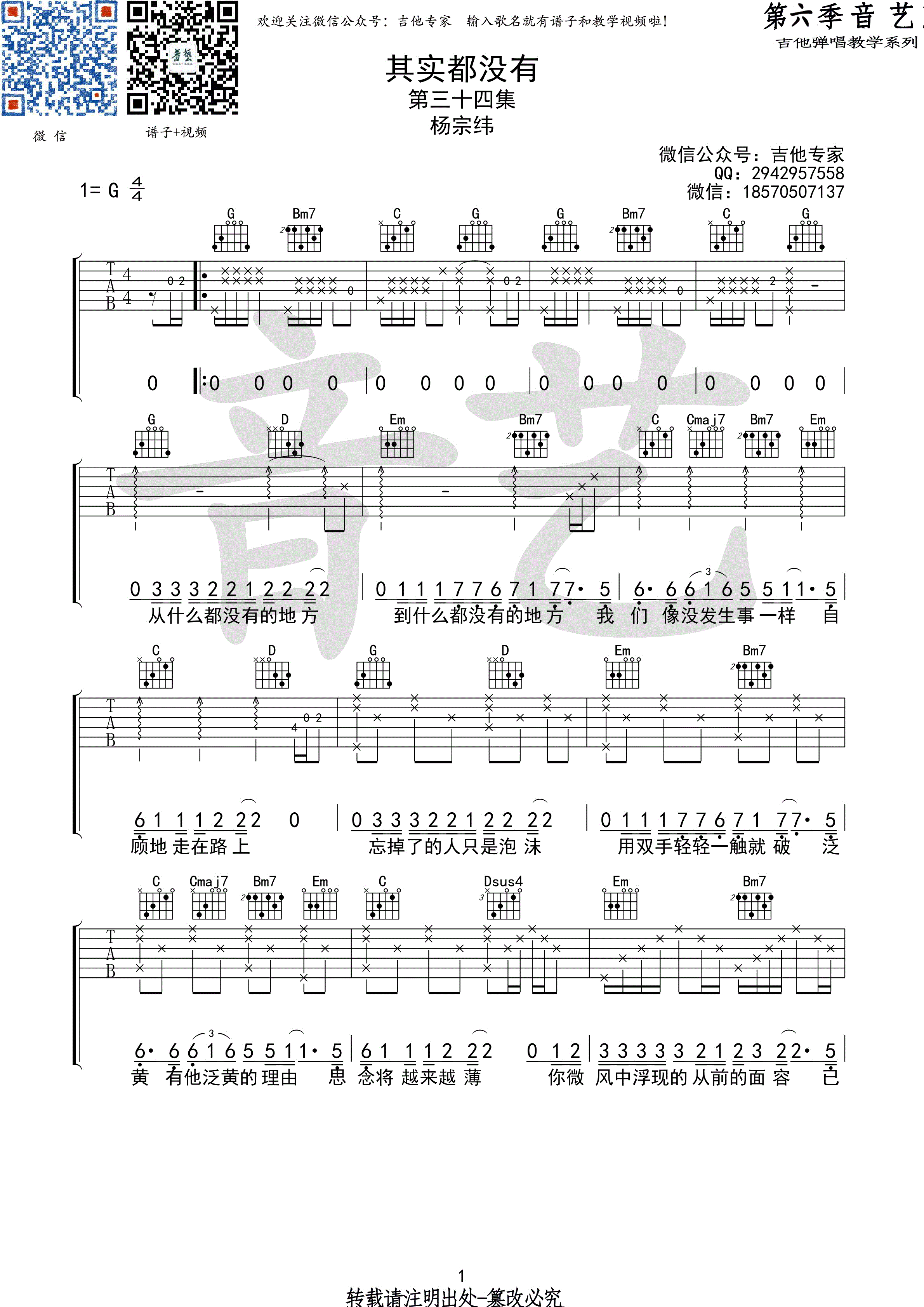 其实都没有吉他谱 - 吉他弹唱谱