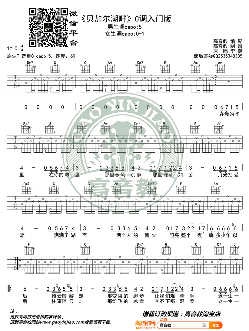 曲谱介绍: 贝加尔湖畔吉他谱,李健创作并演唱的一首经典歌曲,贝加尔湖畔六线谱,C调入门版,变调夹夹五品,两张弹唱图片谱,高音教制谱分享,整理上传。 音乐诗人李健的歌声,总是能触动每一个人的灵魂深处,那悠远深情的旋律、带着淡淡的忧伤,将我们牵引入似梦如幻的唯美宁静的意境当中,令人沉醉不已。