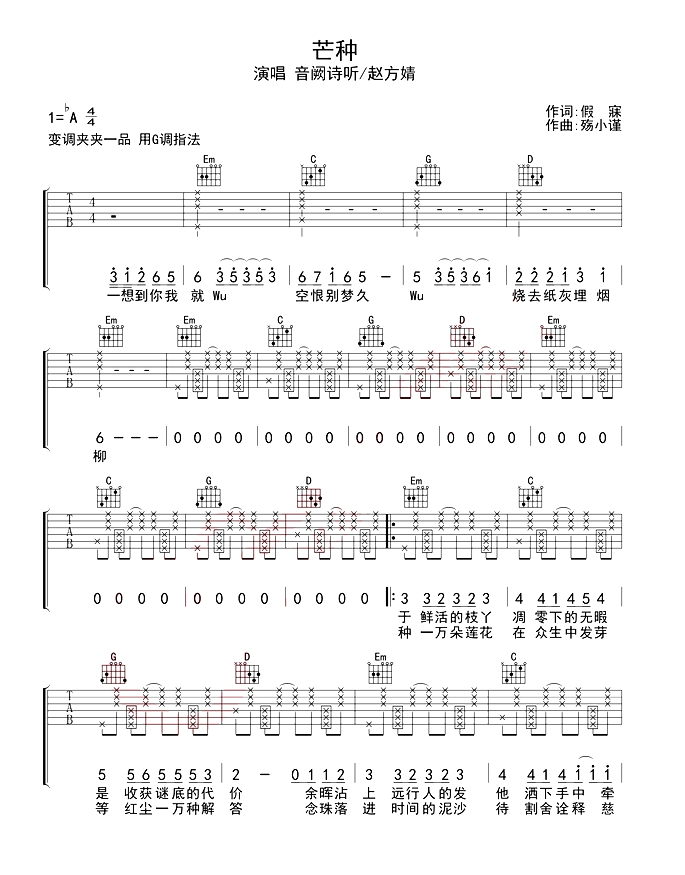 芒种吉他谱 - 吉他弹唱谱