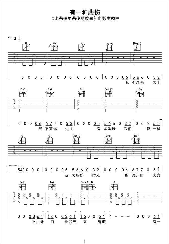 当前位置:琴谱网>吉他弹唱>有一种悲伤