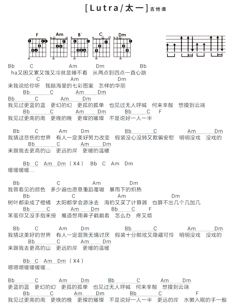 曲谱介绍:   《Lutra》是由太一录唱的一首歌曲,单曲于2017年11月30日通过觉得文化发行。
