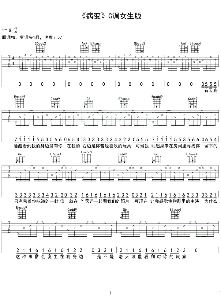 曲谱介绍:   《BINGBIAN病变》女生版由鞠文娴演唱,Jurrivh作曲。   鞠文娴带来女生版全新歌曲《BINGBIAN病变》,清晨的太阳没有什么不同,想往常一样起床,翻看着昨天我们一起照的合照,此刻的我,没有任何情绪,脑海唯独留着跟你的回忆。   Deepain的说唱与鞠文娴共同演绎这一场《病变》,疯癫的理由都是来自你。