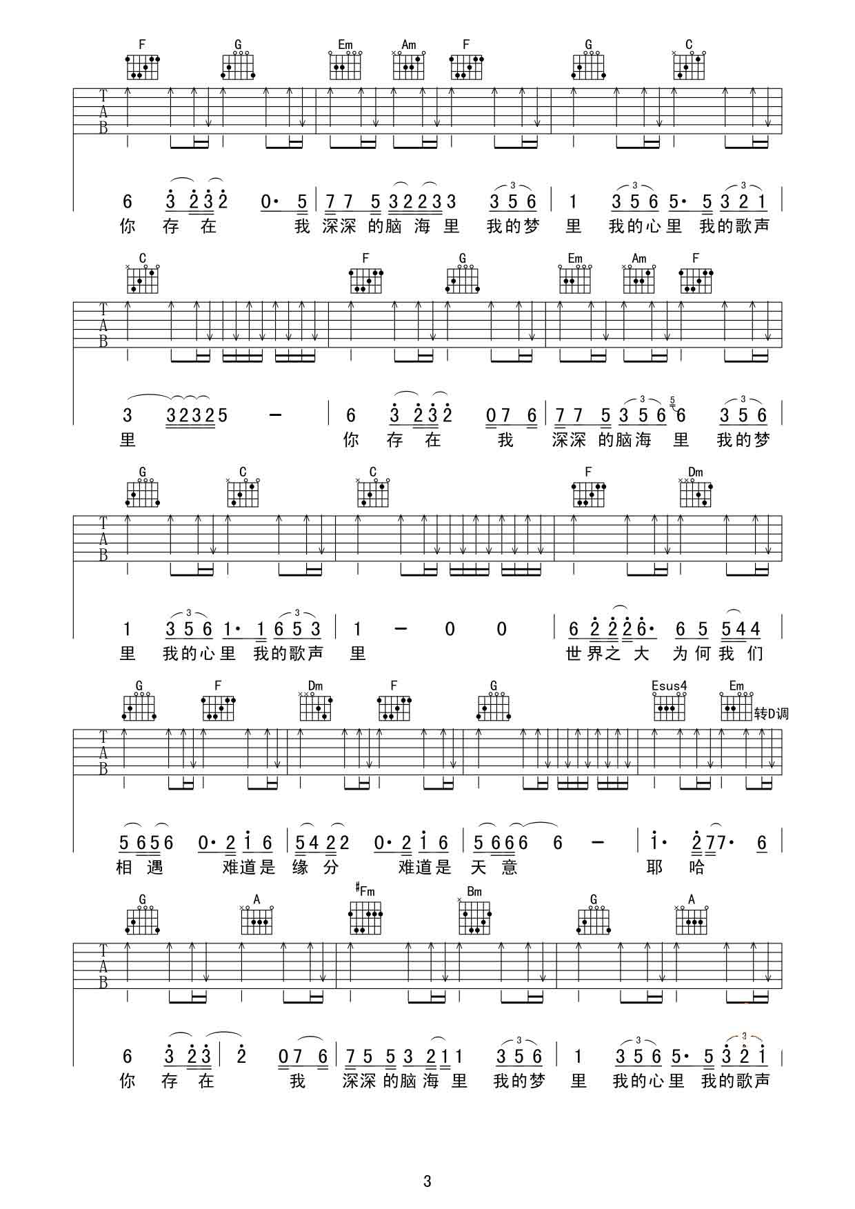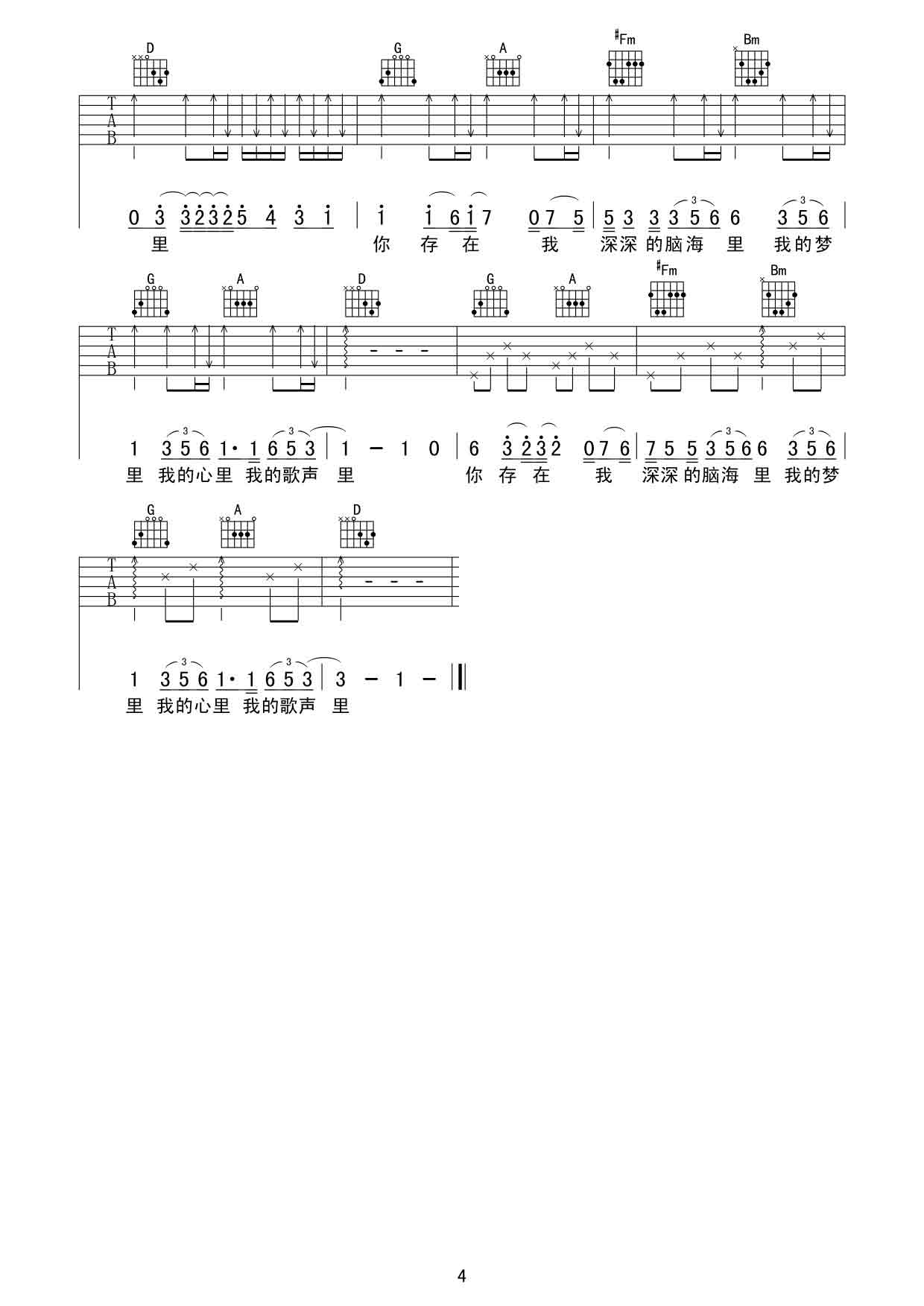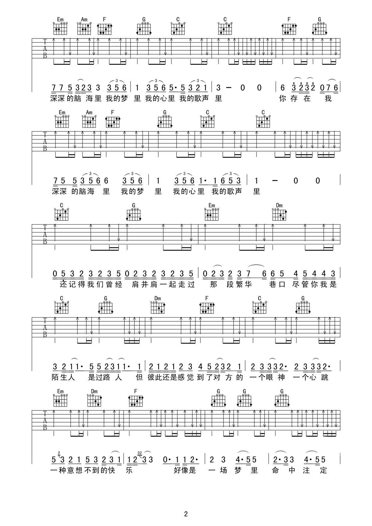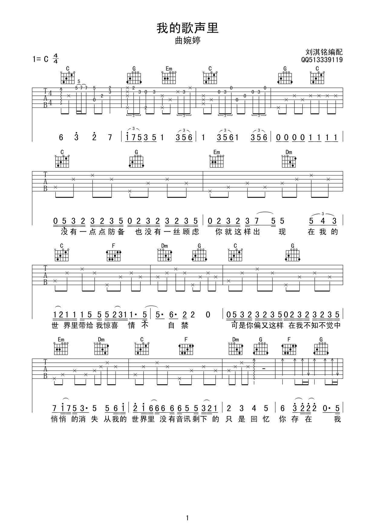 当前位置:琴谱网>吉他弹唱>我的歌声里
