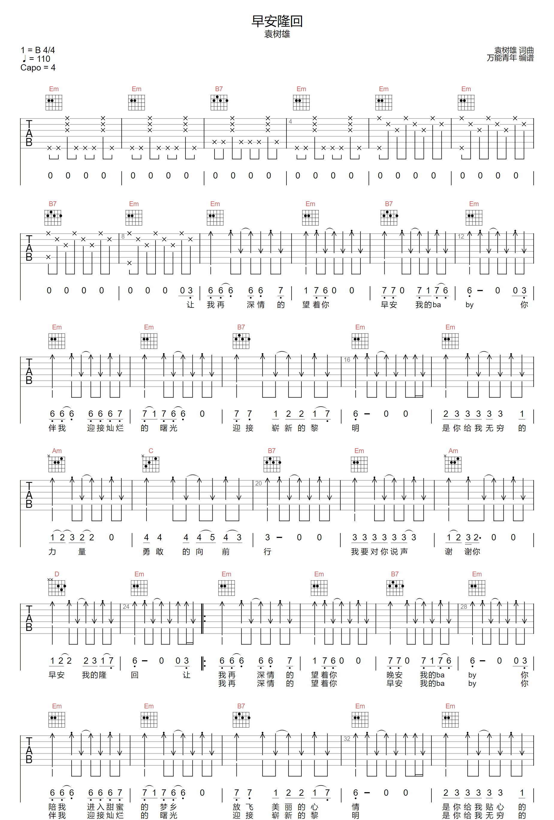 当前位置:琴谱网>吉他弹唱>早安隆回