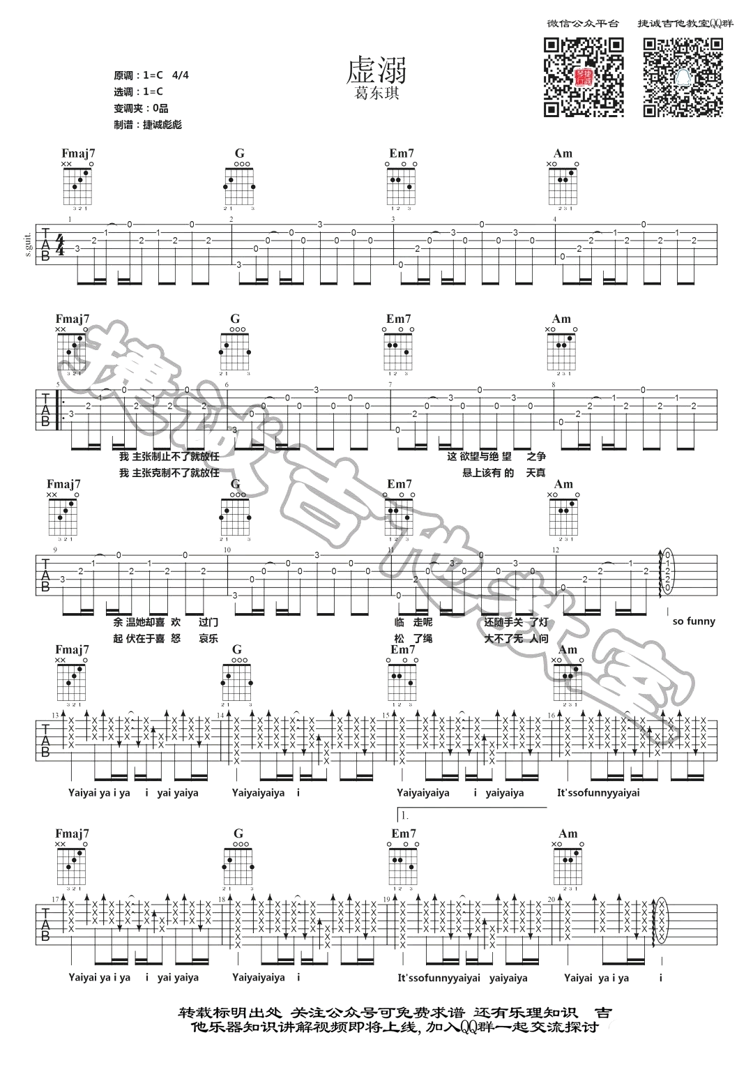 曲谱介绍: 《悬溺》吉他谱,葛东琪演唱,一首爆火的网络歌曲,悬拟六线谱,C调指法原调编配,这首歌曲弹奏简单,只用到了四个常用和弦,感谢捷诚吉他教室制谱出品,随谱附上彪彪老师的吉他演示视频,吉他谱更新上传。 不少网友被抖音上这首歌洗脑,歌词中的“呀咿呀咿呀”非常魔性,它有一种既感觉悬浮在空中的失重感,还有种在水中沉溺的感觉,尤其是那个由远到近的声音,像是沉溺在水中,水却在慢慢的消失,慢慢落入失重的空间。