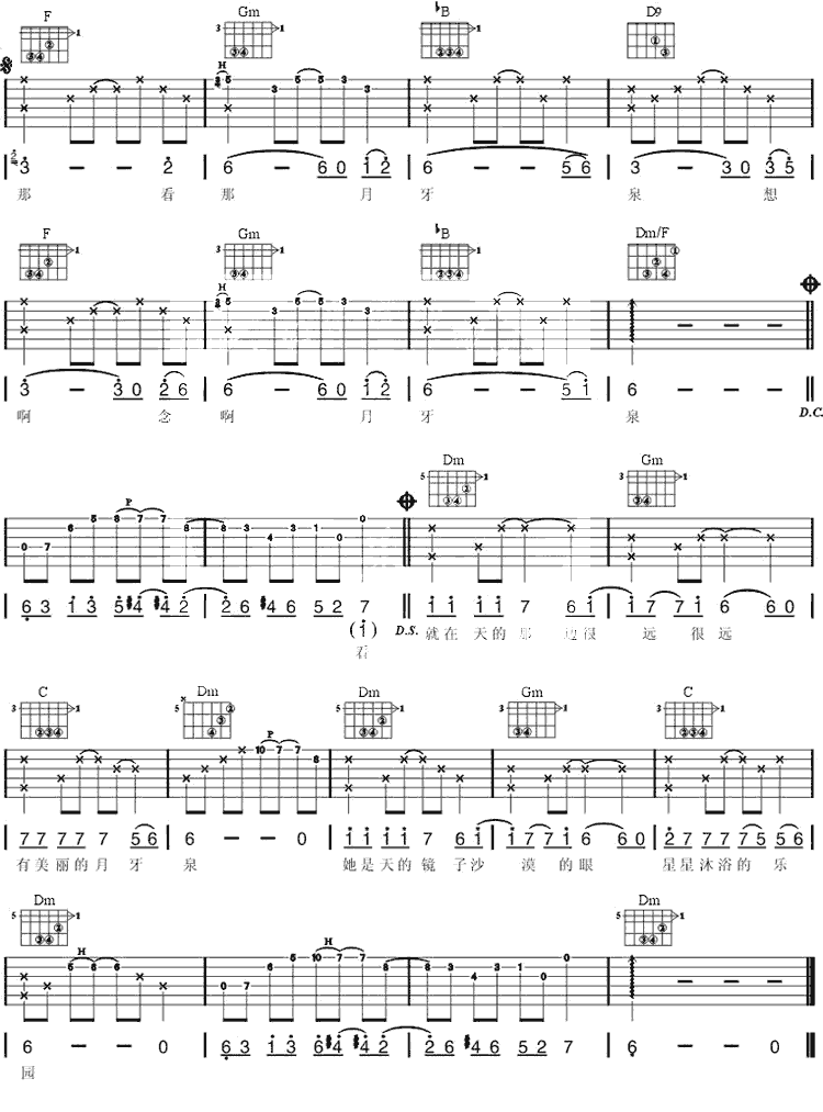 月牙泉吉他谱 - 吉他弹唱谱