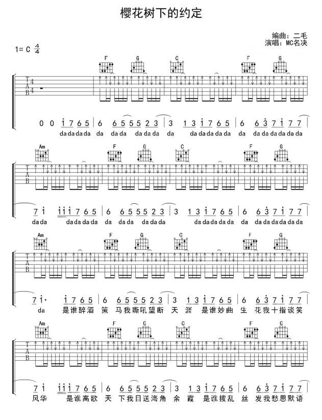 当前位置:琴谱网>吉他弹唱>樱花树下的约定