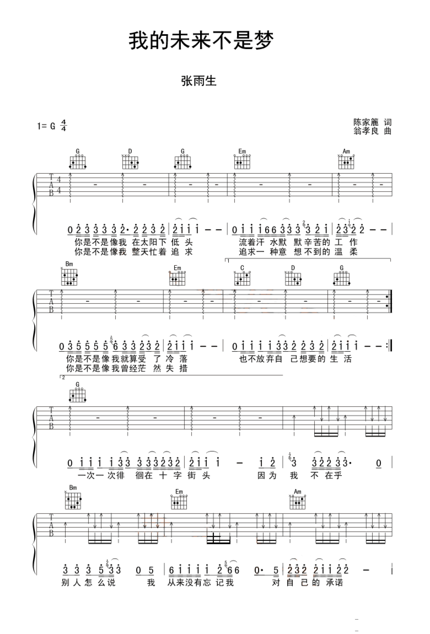 我的未来不是梦吉他谱 - 张雨生 - G调吉他弹唱谱