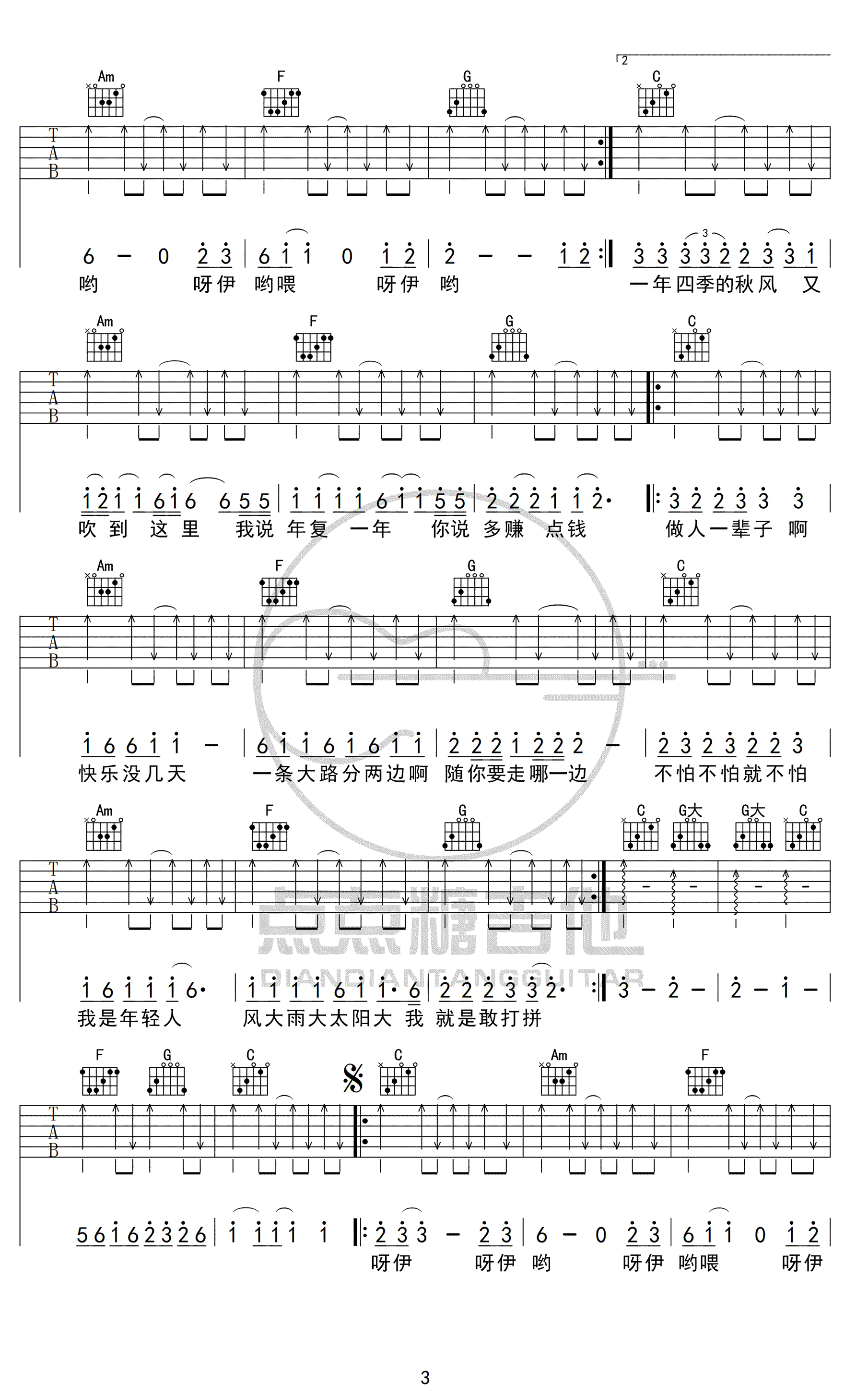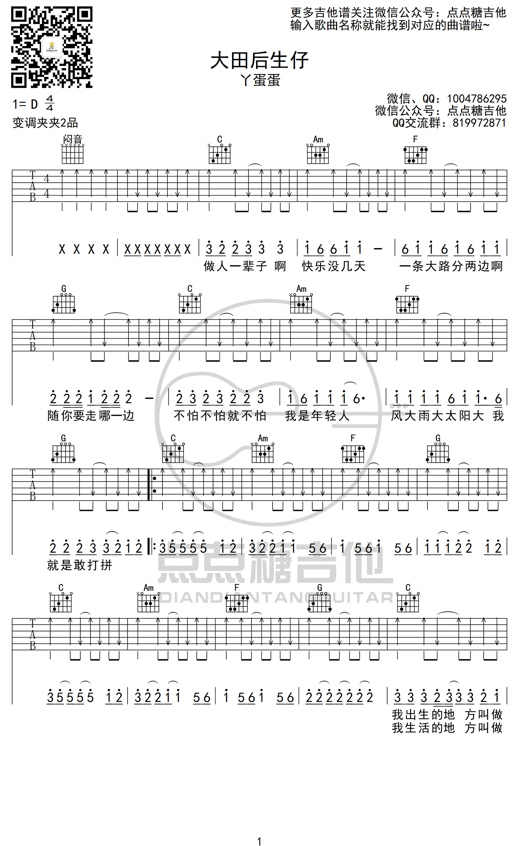 大田后生仔吉他谱 - 丫蛋蛋 - 吉他弹唱谱