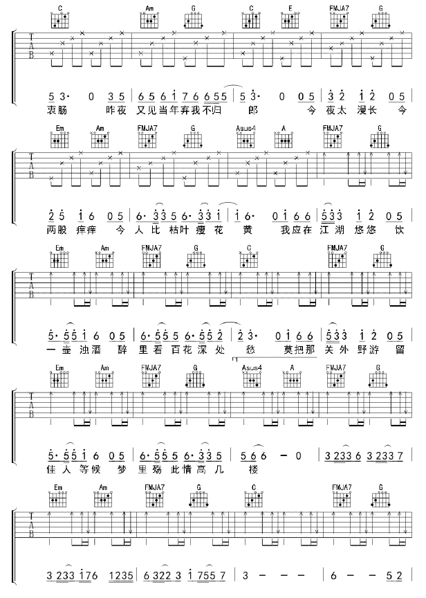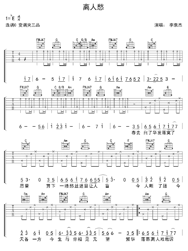 离人愁吉他谱 - 吉他弹唱谱