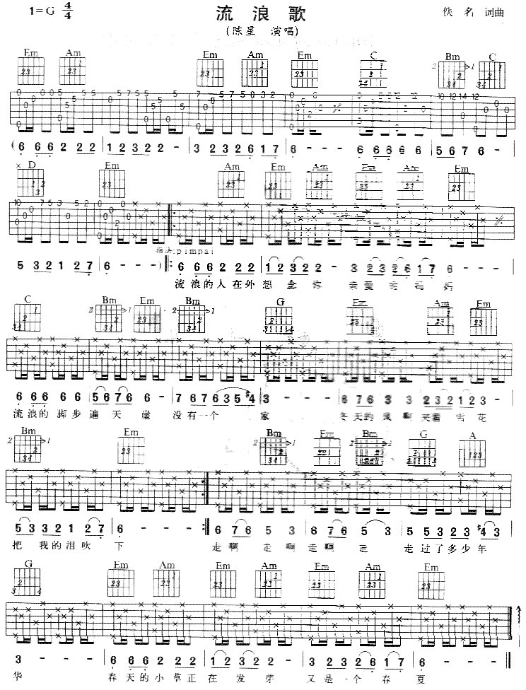 流浪歌吉他谱 - 吉他弹唱谱