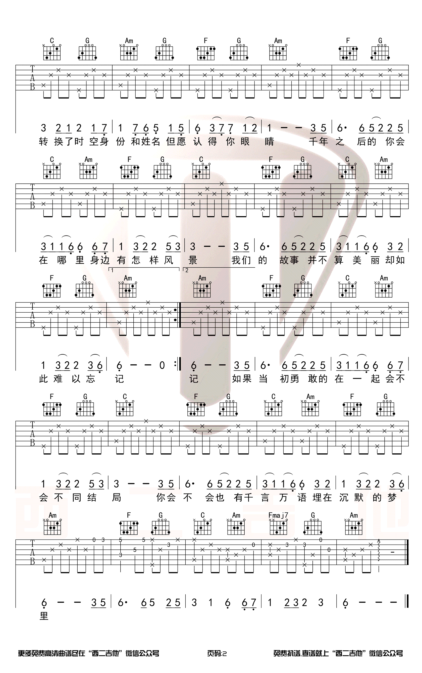 曲谱介绍: 《星月神话》吉他谱,带前奏原版,金莎演唱电视剧《神话》主题曲,星月神话六线谱,C调原版和弦编配,变调夹夹二品。西二吉他制谱分享,更新上传。 人们总说,凭借一首歌就能够回想起一段故事,可能这就是音乐的魅力所在吧!优美的旋律,入心的歌词,每次听起都会想起胡歌主演的穿越电视剧《神话》,易小川和素素的故事给人无尽感动。
