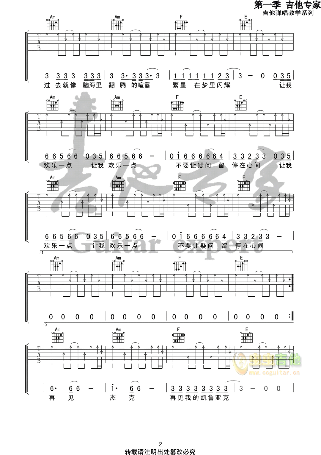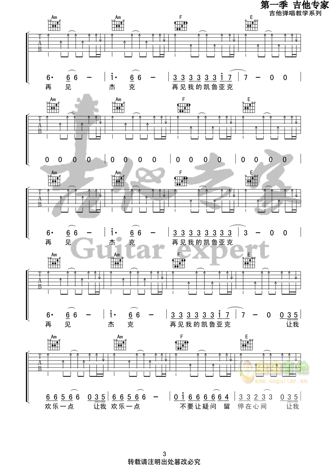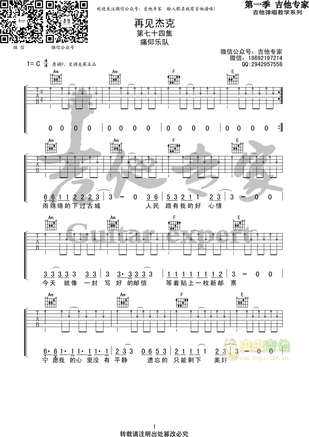 再见杰克吉他谱 - 吉他弹唱谱