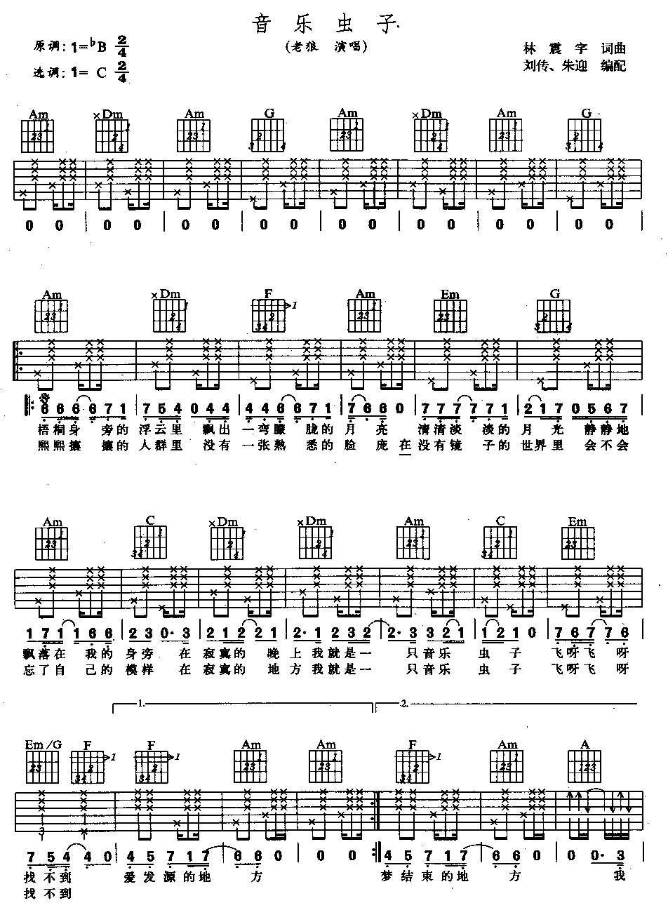 音乐虫子吉他谱 - 吉他弹唱谱