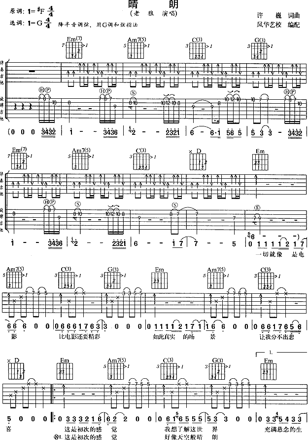 晴朗吉他谱 - 吉他弹唱谱