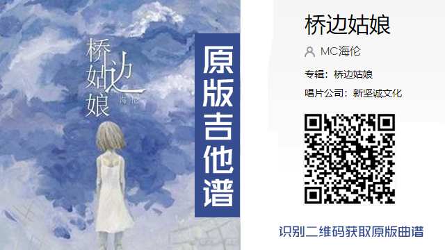 曲谱介绍: 《桥边姑娘》吉他谱,海伦的一首民谣风网络热门歌曲,桥边姑娘六线谱,C调入门版,变调夹夹三品,女生不夹,感谢王小宁编配,更新分享。