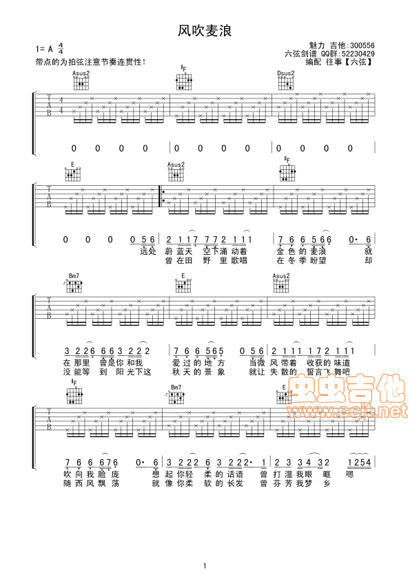 风吹麦浪吉他谱 - 吉他弹唱谱
